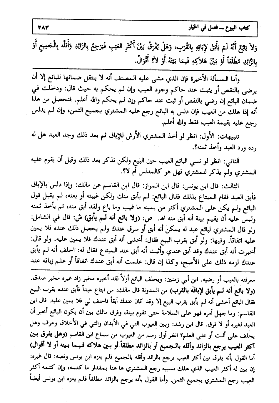 ولا بائع أنه لم يأبق لإباقه بالقرب, وهل يفرق بين أكثر العيب فيرجع بالزائد وأقله بالجميع أو بالزائد مطلقا أو بين هلاكه فيما بينه أولا ؟ أقوال.