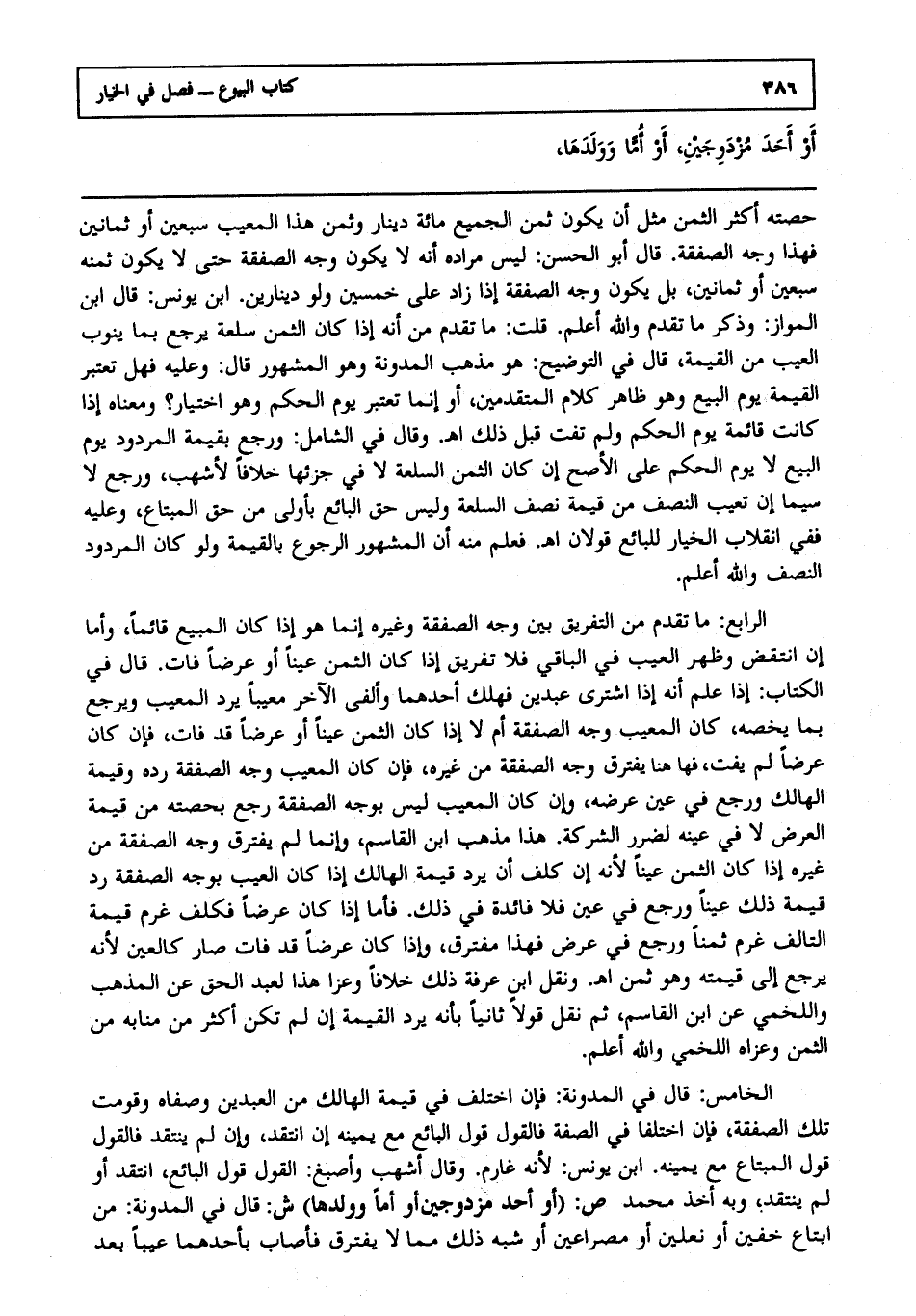 الخامس: قال في المدونة: فإن اختلف في قيمة الهالك من العبدين وصفاه وقومت تلك الصفقة، فإن اختلفا في الصفة فالقول قول البائع مع يمينه إن انتقد، وإن لم ينتقد فالقول قول المبتاع مع يمينه ابن يونس؛ لأنه غارم، وقال أشهب وأصبغ: القول قول البائع انتقد، أو لم ينتقد، وبه أخذ محمد.ص: (أو أحد مزدوجين، أو أما وولدها) ش: قال في المدونة: من ابتاع خفين، أو نعلين، أو مصراعين، أو شبه ذلك مما لا يفترق فأصاب بأحدهما عيبا بعد