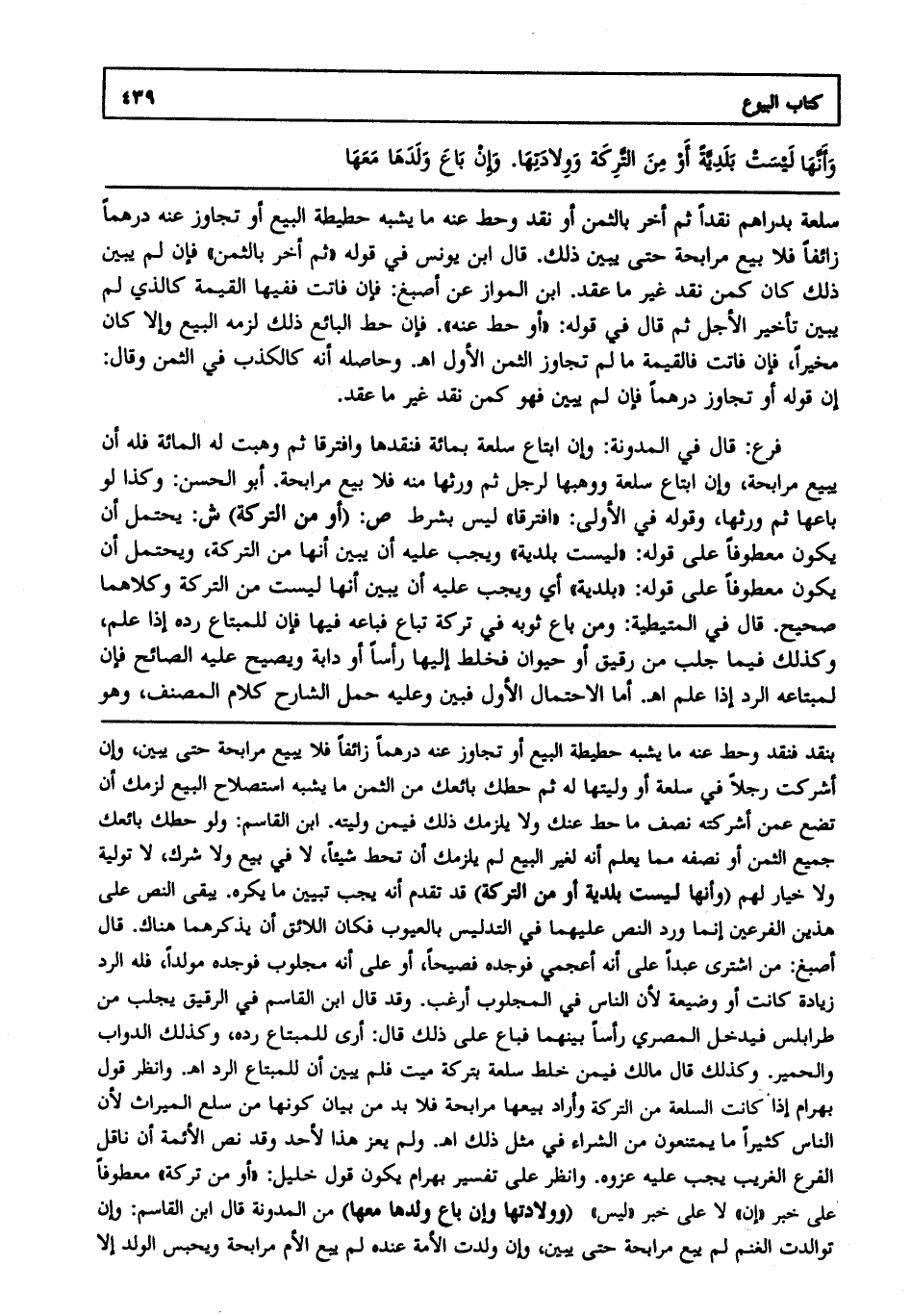 سلعة بدراهم نقدا، ثم أخر بالثمن أو نقد وحط عنه ما يشبه حطيطة البيع أو تجاوز عنه درهما زائفا فلا يبيع مرابحة حتى يبين ذلك قال ابن يونس في قوله: ثم أخر بالثمن فإن لم يبين ذلك كان كمن نقد غير ما عقد. ابن المواز عن أصبغ فإن فاتت ففيها القيمة كالذي لم يبين تأخير الأجل، ثم قال في قوله: أو حط عنه فإن حط البائع ذلك لزمه البيع وإلا كان مخيرا فإن فاتت فالقيمة ما لم تجاوز الثمن الأول ا هـ. وحاصله أنه كالكذب في الثمن، وقال إن قوله: أو تجاوز درهما فإن لم يبين فهو كمن نقد غير ما عقد. فرع: قال في المدونة: وإن ابتاع سلعة بمائة فنقدها وافترقا، ثم وهبت له المائة فله أن يبيع مرابحة وإن ابتاع سلعة ووهبها لرجل، ثم ورثها منه فلا يبيع مرابحة. أبو الحسن وكذا لو باعها ثم ورثها، وقوله في الأولى افترقا ليس بشرط. ص: (أو من التركة) ش: يحتمل أن يكون معطوفا على قوله: ليست بلدية ويجب عليه أن يبين أنها من التركة ويحتمل أن يكون معطوفا على قوله: بلدية أي ويجب عليه أن يبين أنها ليست من التركة وكلاهما صحيح قال في المتيطية: ومن باع ثوبه في تركة تباع فباعه فيها فإن للمبتاع رده إذا علم، وكذلك فيما جلب من رقيق أو حيوان فخلط إليها رأسا أو دابة ويصيح عليه الصائح فإن لمبتاعه الرد إذا علم ا هـ. أما الاحتمال الأول فبين، وعليه حمل الشارح كلام المصنف، وهو