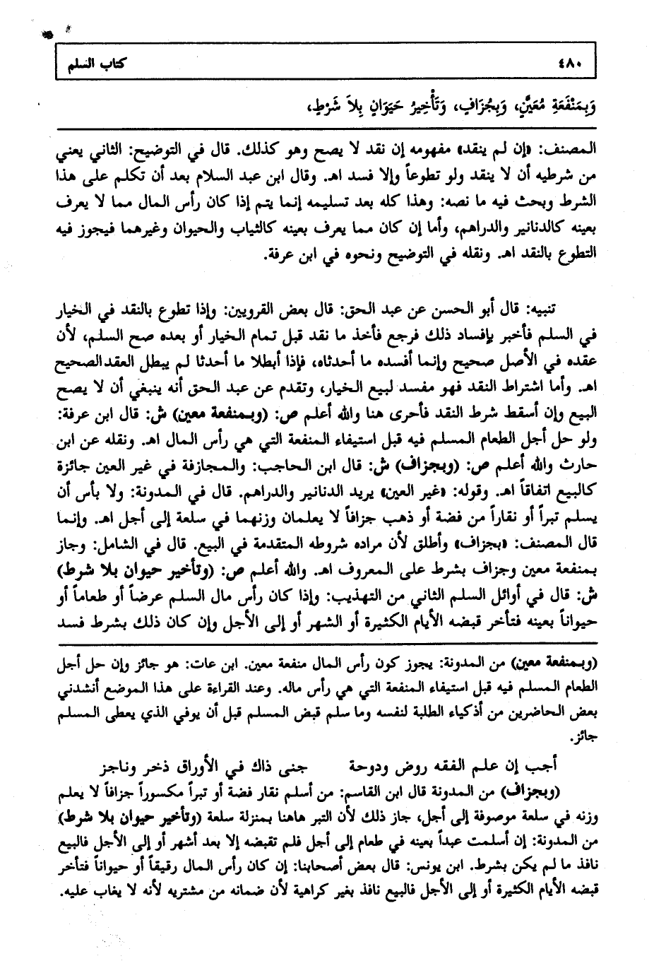 وبمنفعة معين, وبجزاف, وتأخير حيوان بلا شرط,