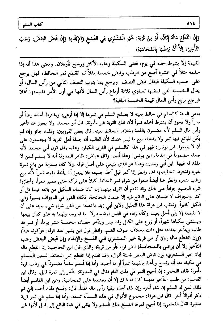 وإن انقطع ماله إبان, أو من قرية خير المشتري في الفسخ والإبقاء؛ وإن قبض البعض: وجب التأخير, إلا أن يرضيا بالمحاسبة,
