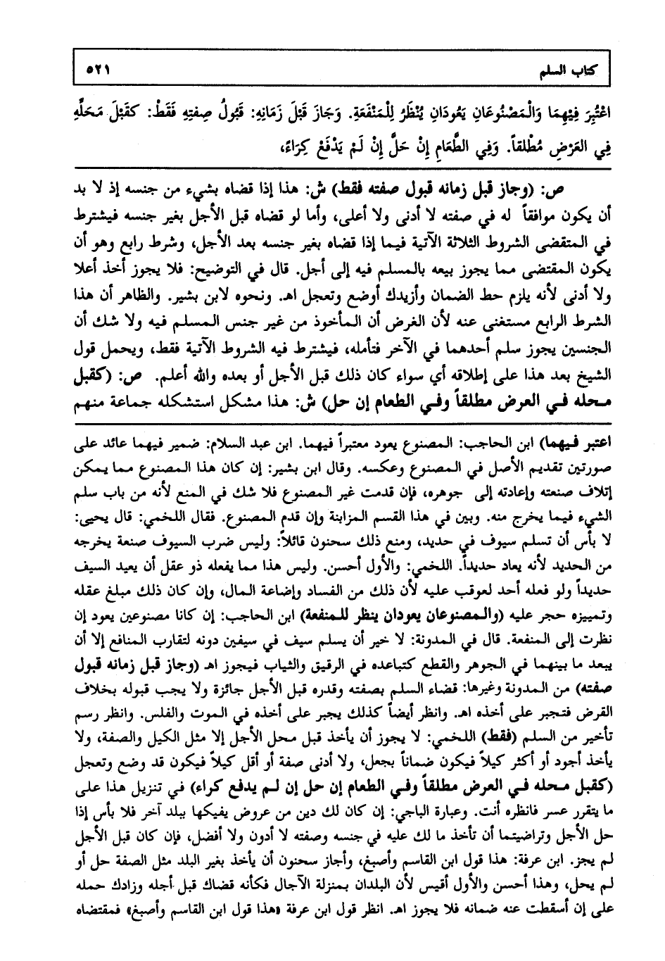اعتبر فيهما والمصنوعان يعودان ينظر للمنفعة. وجاز قبل زمانه: قبول صفته فقط: كقبل محله في العرض مطلقا. وفي الطعام إن حل لم يدفع كراء,