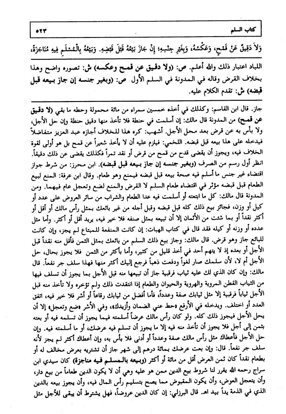 اللباد اعتبار ذلك، والله أعلم. ص:(ولا دقيق عن قمح وعكسه) ش: تصوره واضح، وهذا بخلاف القرض، وقاله في المدونة في السلم الأول. ص:(وبغير جنسه إن جاز بيعه قبل قبضه) ش: تقدم الكلام عليه.