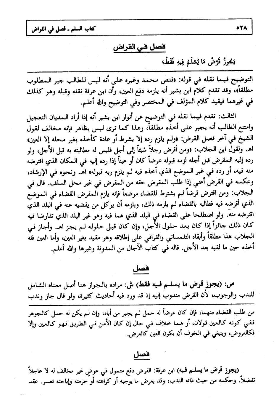 ص:(يجوز قرض ما يسلم فيه فقط) ش: مراده بالجواز هنا أصل معناه الشامل للندب والوجوب؛ لأن القرض مندوب إليه إذ قد ورد فيه أحاديث كثيرة ولو قال: جاز وندب