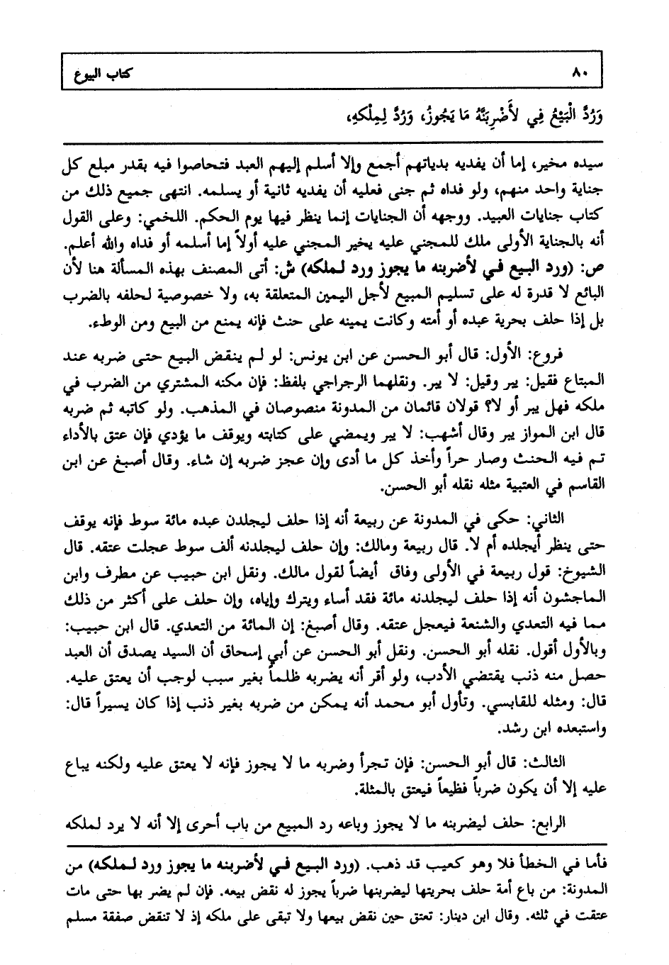 ورد البيع في لأضربنه ما يجوز, ورد لملكه,