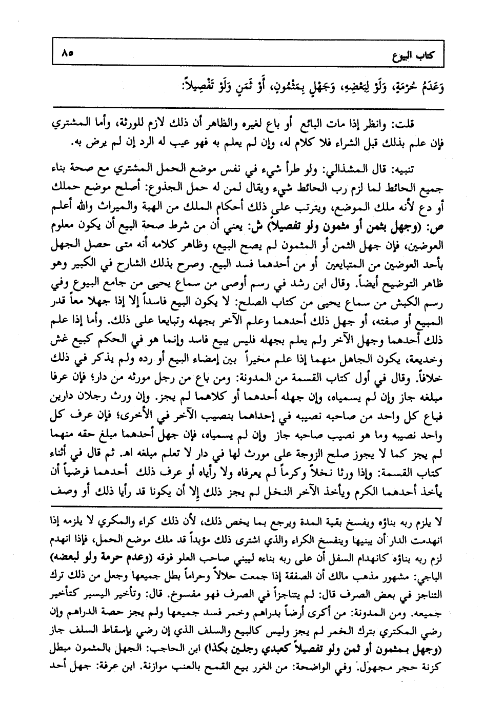 وعدم حرمه ولو لبعضه وجهل بمثمون أو ثمن ولو تفصيلا: