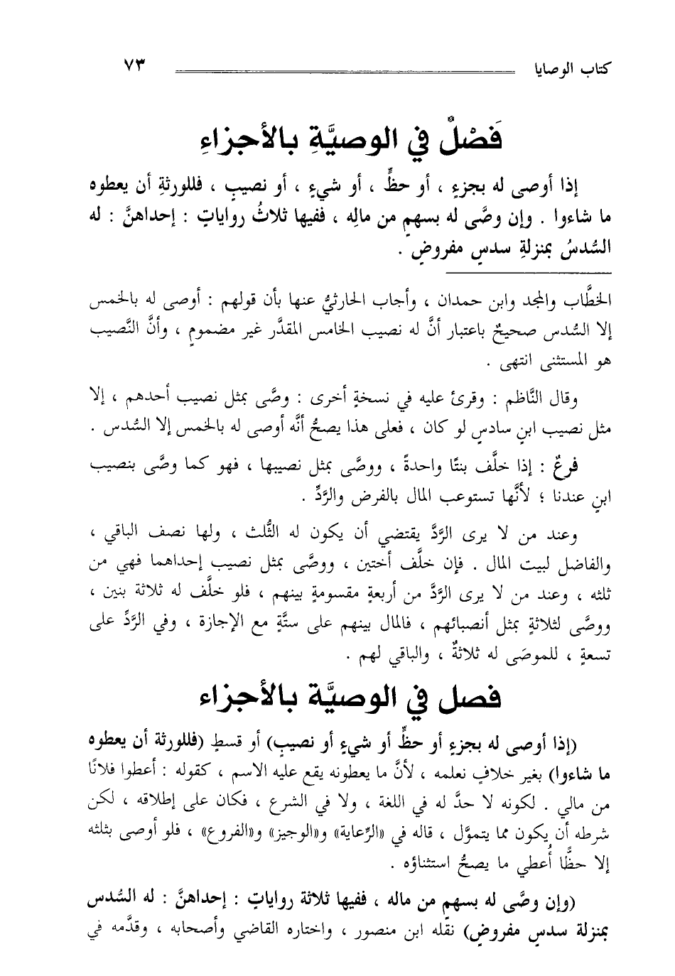 فصل في الوصية بالأجزاء