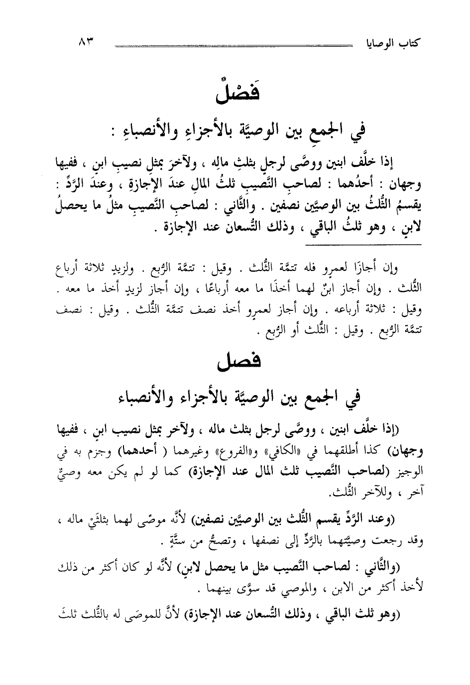 في الجمع بين الوصية بالأجزاء والأنصباء