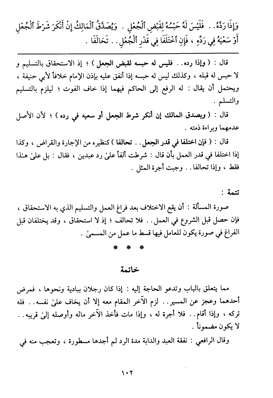 قال: (وإذا رده .. فليس له حبسه لقبض الجعل)؛ إذ الاستحقاق بالتسليم ولا حبس له قبله، وكذلك ليس له حبسه إذا أنفق عليه بإذن الإمام خلافًا لأبي حنيفة، ويحتمل أن يقال: له الرفع إلى الحاكم فيهما إذا خاف الفوت؛ ليلزم بالتسليم والتسلم.