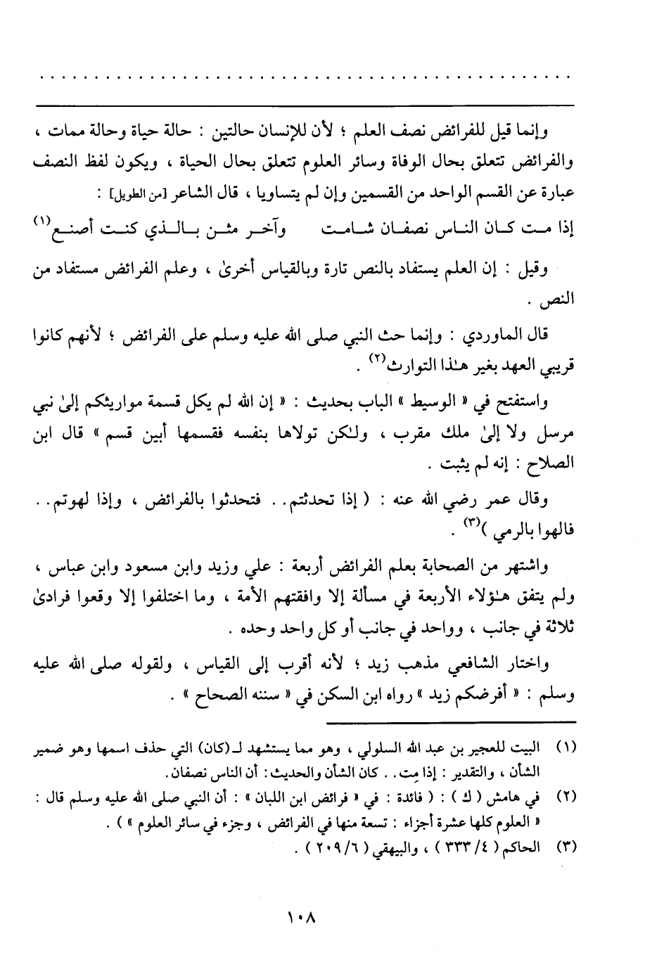 وإنما قيل للفرائض نصف العلم؛ لأن للإنسان حالتين: حالة حياة وحالة ممات، والفرائض تتعلق بحال الوفاة وسائر العلوم تتعلق بحال الحياة، ويكون لفظ النصف عبارة عن القسم الواحد من القسمين وإن لم يتساويا، قال الشاعر: