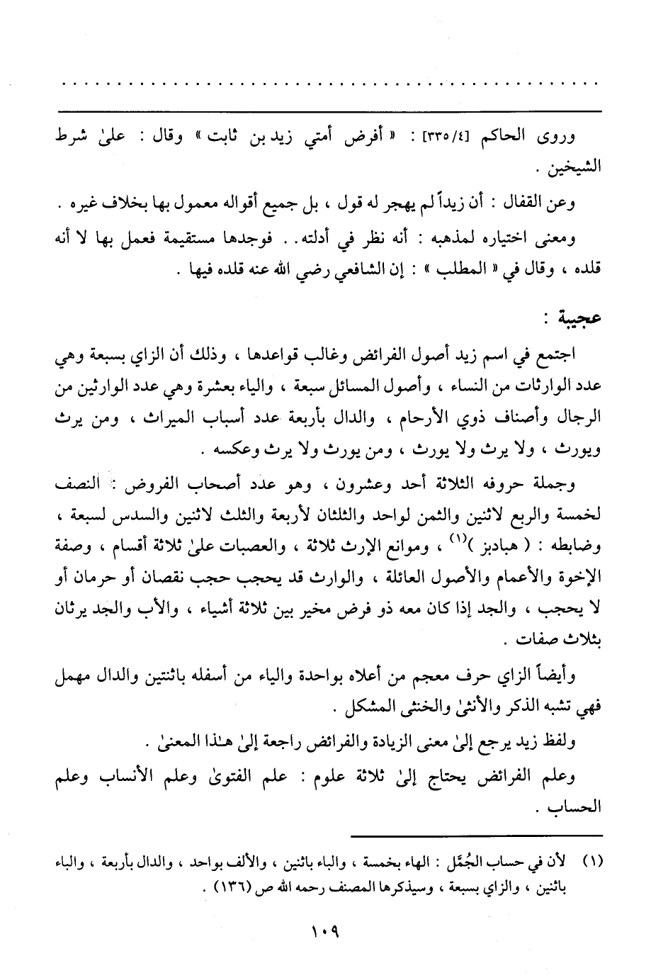 وعلم الفرائض يحتاج إلى ثلاثة علوم: علم الفتوى وعلم الأنساب وعلم الحساب.