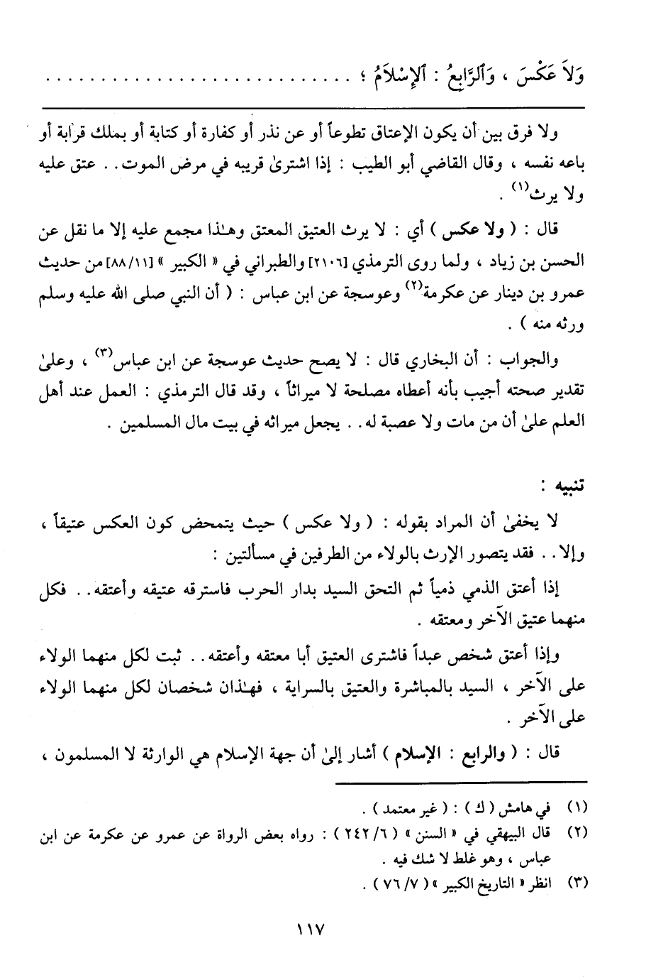 وَلاَ عَكْسَ، وَالرَّابعُ: الإِسْلاَمُ؛