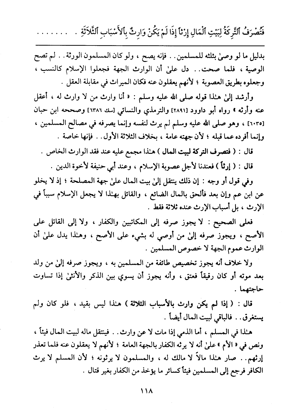 بدليل ما لو وصى بثلثه للمسلمين .. فإنه يصح، ولو كان المسلمون الورثة .. لم تصح الوصية، فلما صحت .. دل على أن الوارث الجهة فجعلوا الإسلام كالنسب، وجعلوه بطريق العصوبة؛ لأنهم يعقلون عنه فكان الميراث في مقابلة العقل.