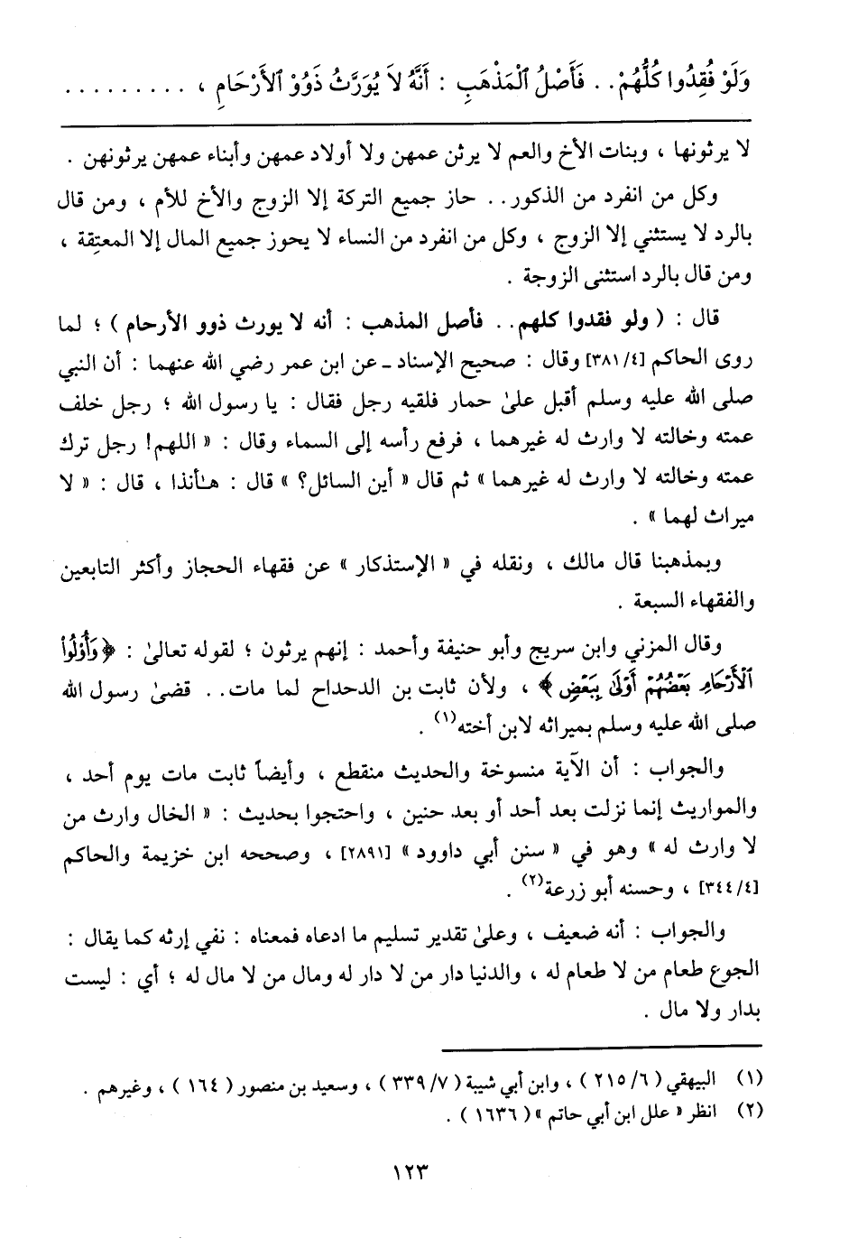 وَلَوْ فُقِدُوا كُلُّهُمْ .. فَأَصْلُ الْمَذْهَبِ: أَنَّهُ لاَ يُوَرَّثُ ذَوُوْ الأَرْحَامِ،