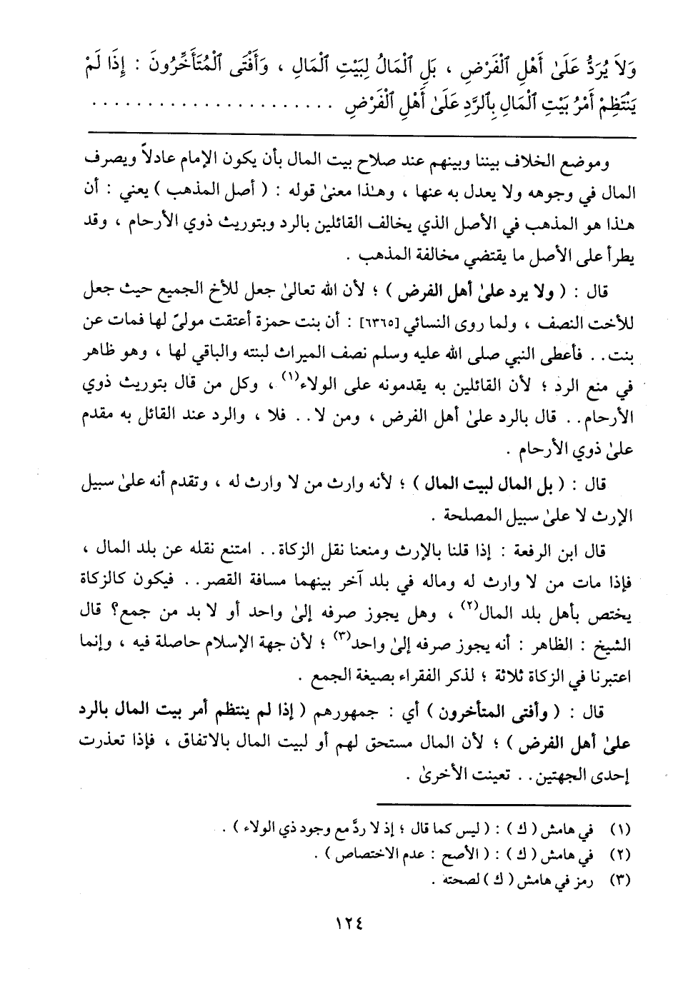 قال: (وأفتى المتأخرون) أي: جمهورهم (إذا لم ينتظم أمر بيت المال بالرد على أهل الفرض)؛ لأن المال مستحق لهم أو لبيت المال بالاتفاق، فإذا تعذرت إحدى الجهتين .. تعينت الأخرى.