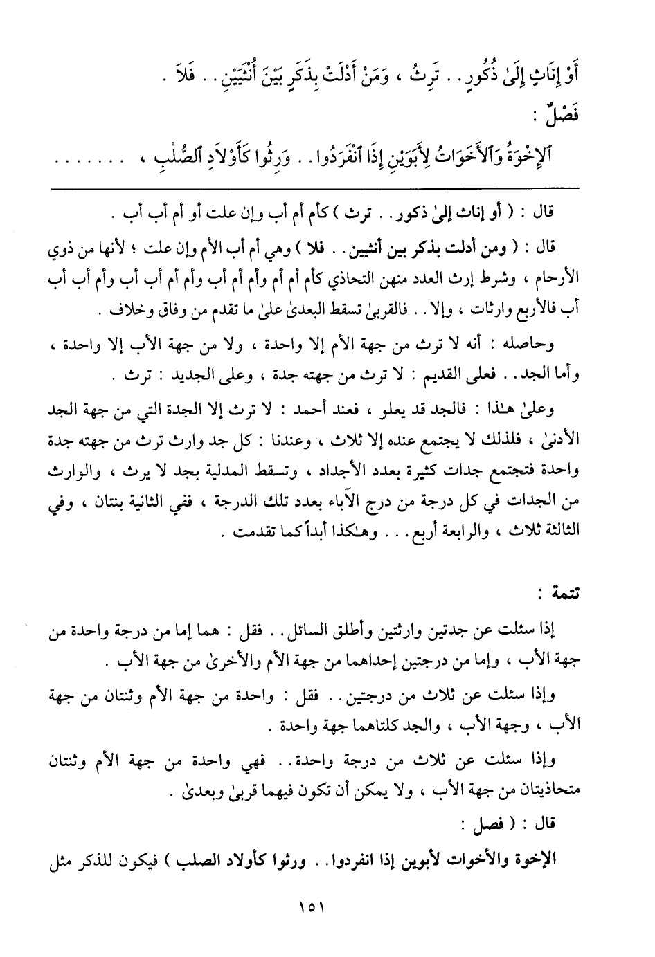 الإخوة والأخوات لأبوين إذا انفردوا .. ورثوا كأولاد الصلب) فيكون للذكر مثل