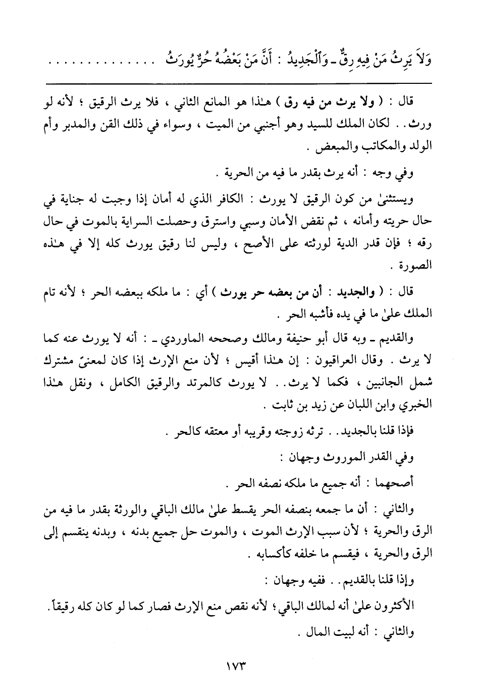 وَلاَ يَرِثُ مَنْ فِيهِ رِقٌّ - وَالْجَدِيدُ: أَنَّ مَنْ بَعْضُهُ حُرٌّ يُوَرَثُ