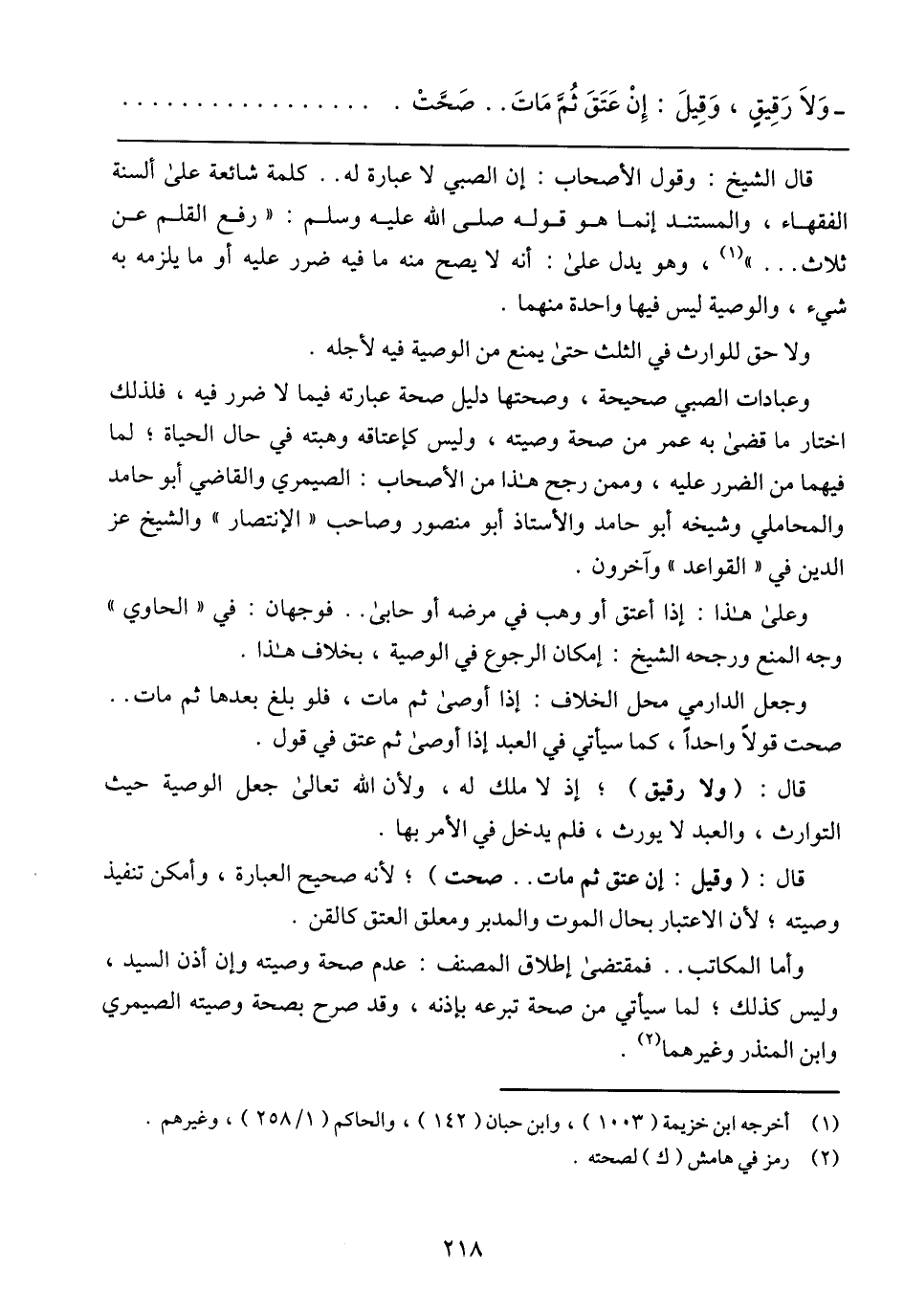 - وَلَا رَقِيقٍ، وَقِيلَ: إِنْ عَتَقَ ثُمَّ مَاتَ .. صَحَّتْ