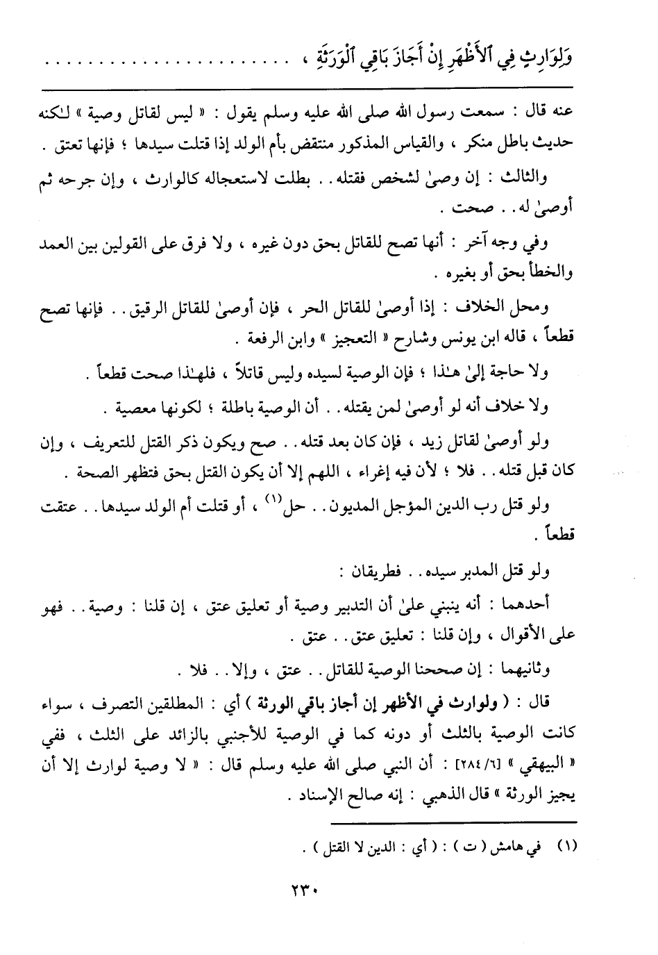 ومحل الخلاف: إذا أوصى للقاتل الحر، فإن أوصى للقاتل الرقيق .. فإنها تصح قطعًا، قال ابن يونس وشارح (التعجيز) وابن الرفعة.