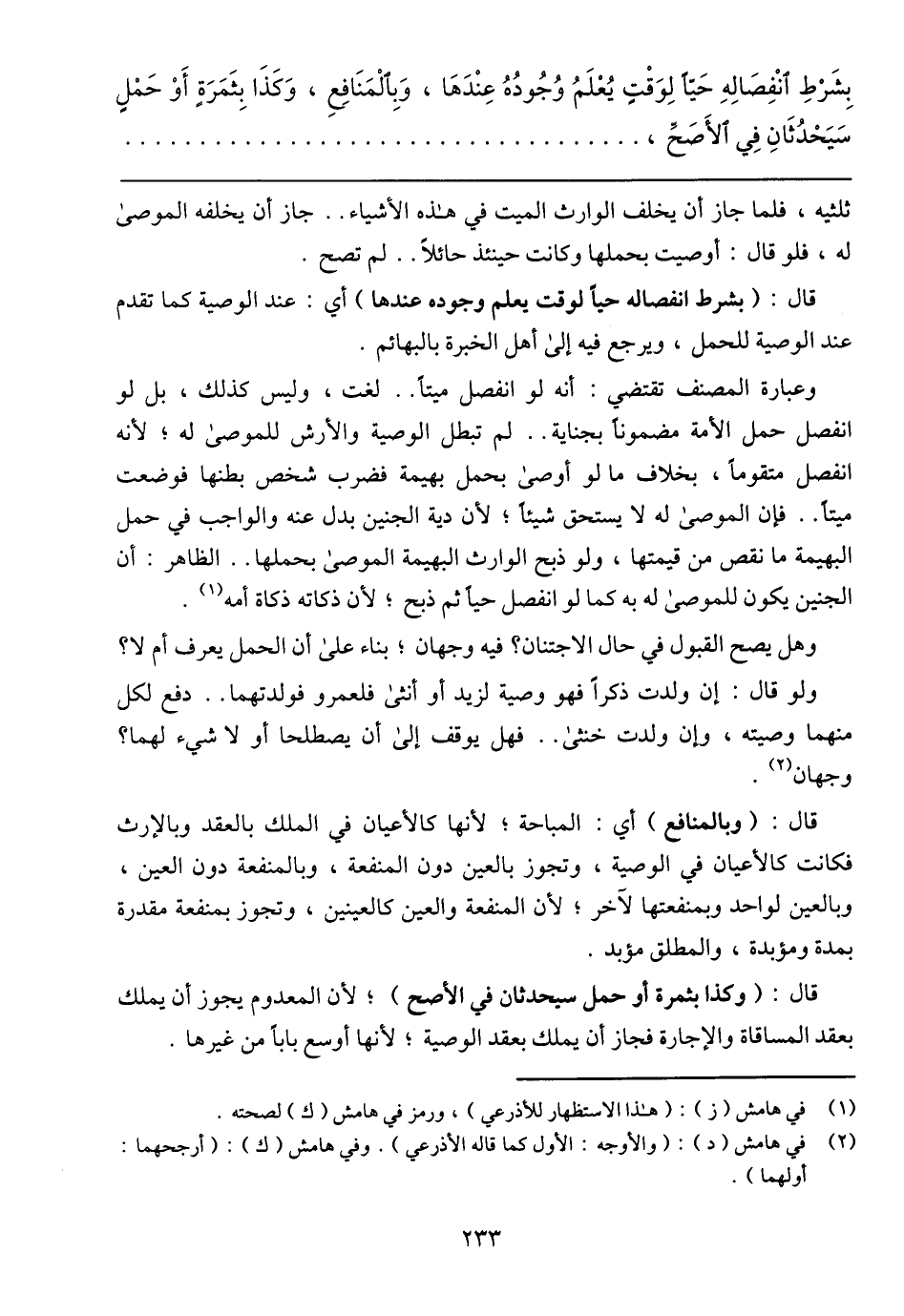 قال: (بشرط انفصاله حيًا لوقت يعلم وجوده عندها) أي: عند الوصية كما تقدم عند الوصية للحمل، ويرجع فيه إلى أهل الخبرة بالبهائم.