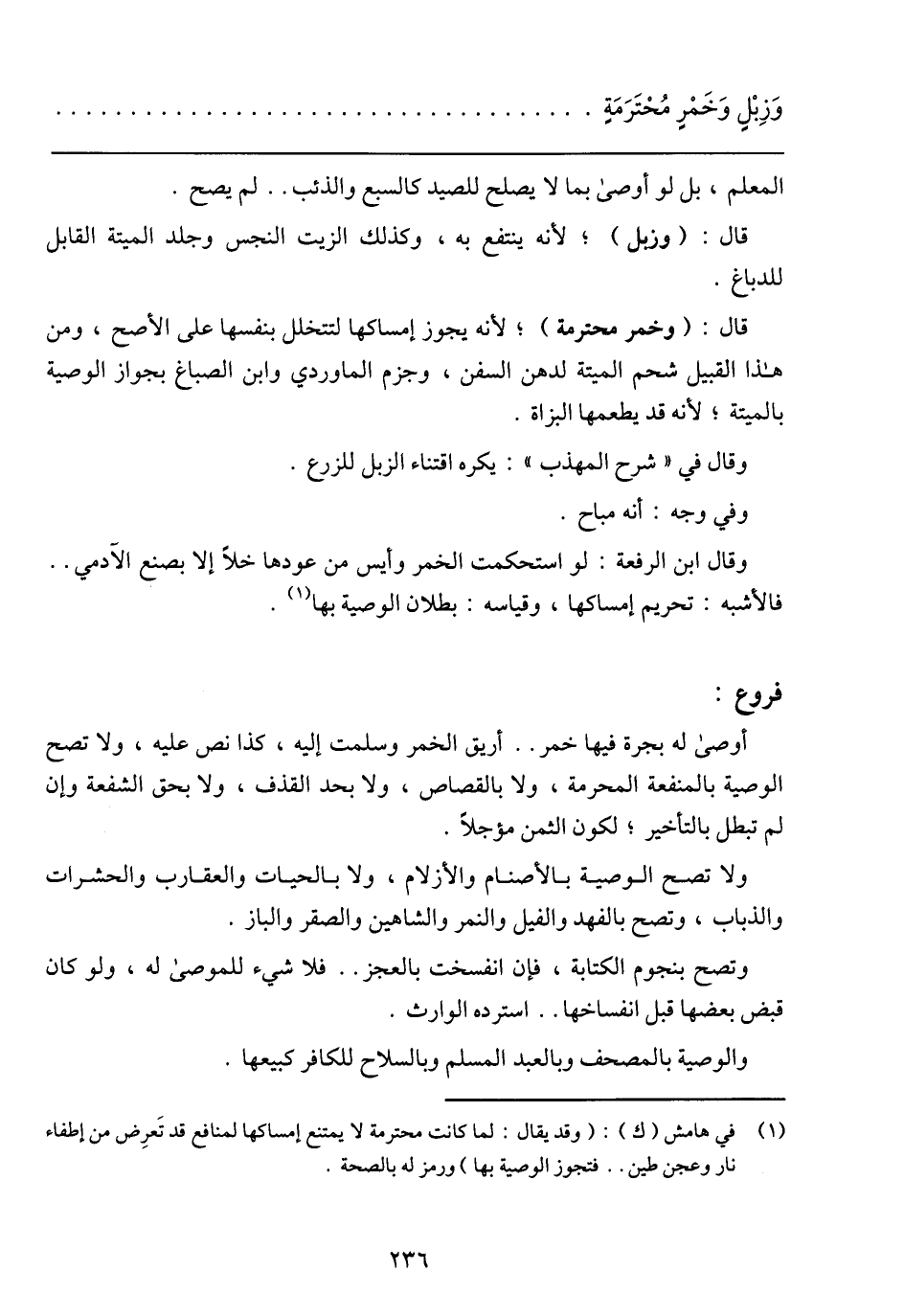 وَزِبْلٍ وَخَمْرٍ مُحْتَرَمَةٍ