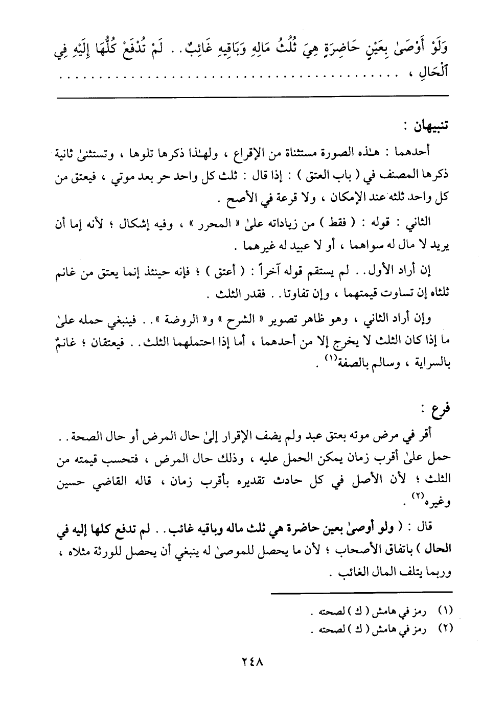 أقر في مرض موته بعتق عبد ولم يضف الإقرار إلى حال المرض أو حال الصحة .. حمل على أقرب زمان يمكن الحمل عليه، وذلك حال المرض، فتحسب قيمته من الثلث؛ لأن الأصل في كل حادث تقديره بأقرب زمان، قاله القاضي حسين وغيره.