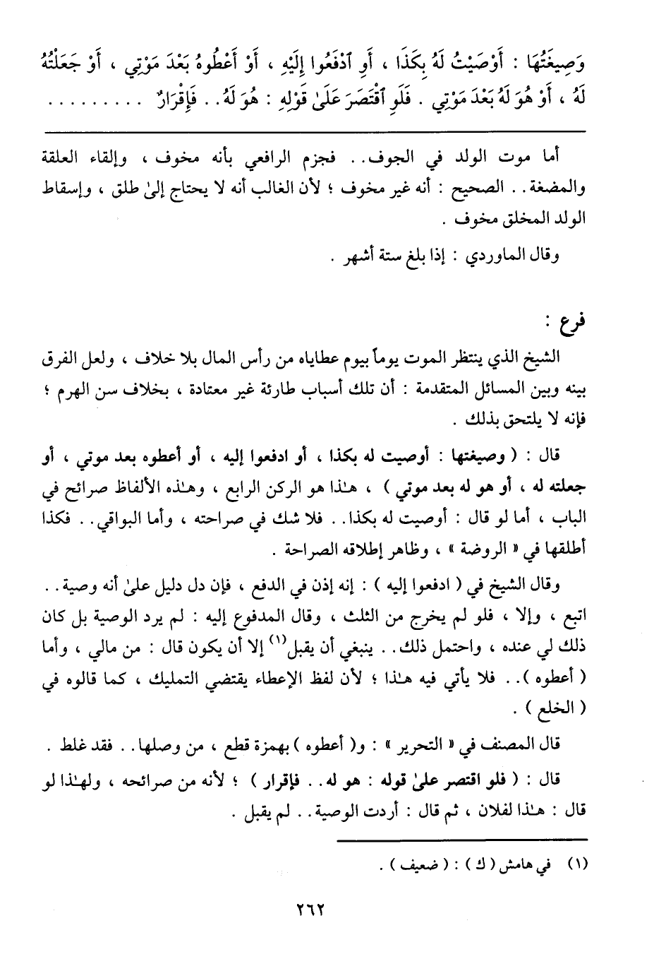 قال: (وصيغتها: أوصيت له بكذا، أو ادفعوا إليه، أو أعطوه بعد موتي، أو جعلته له، أو هو له بعد موتي)،هذا هو الركن الرابع، وهذه الألفاظ صرائح في الباب، أما لو قال: أوصيت له بكذا ... فلاشك في صراحته، وأما البواقي .. فكذا أطلقها في (الروضة)،وظاهر إطلاقه الصراحة.