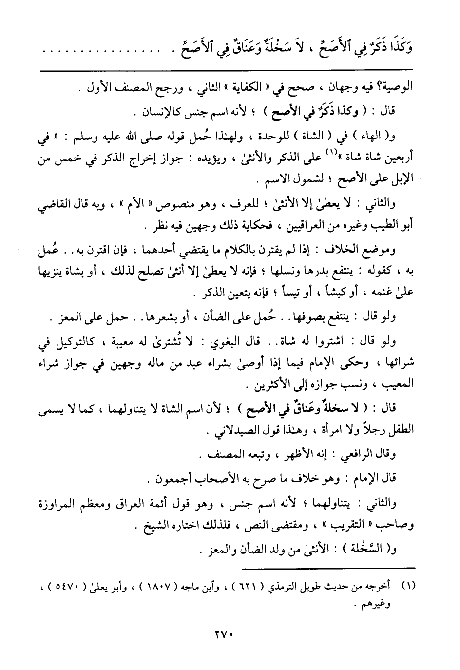 و (الهاء) في (الشاة) للوحدة، ولهذا حمل قوله - صلى الله عليه وسلم -: (في أربعين شاة شاة) على الذكر والأنثى، ويؤيده جواز إخراج الذكر في خمس من الإبل على الأصح؛ لشمول الإسم.