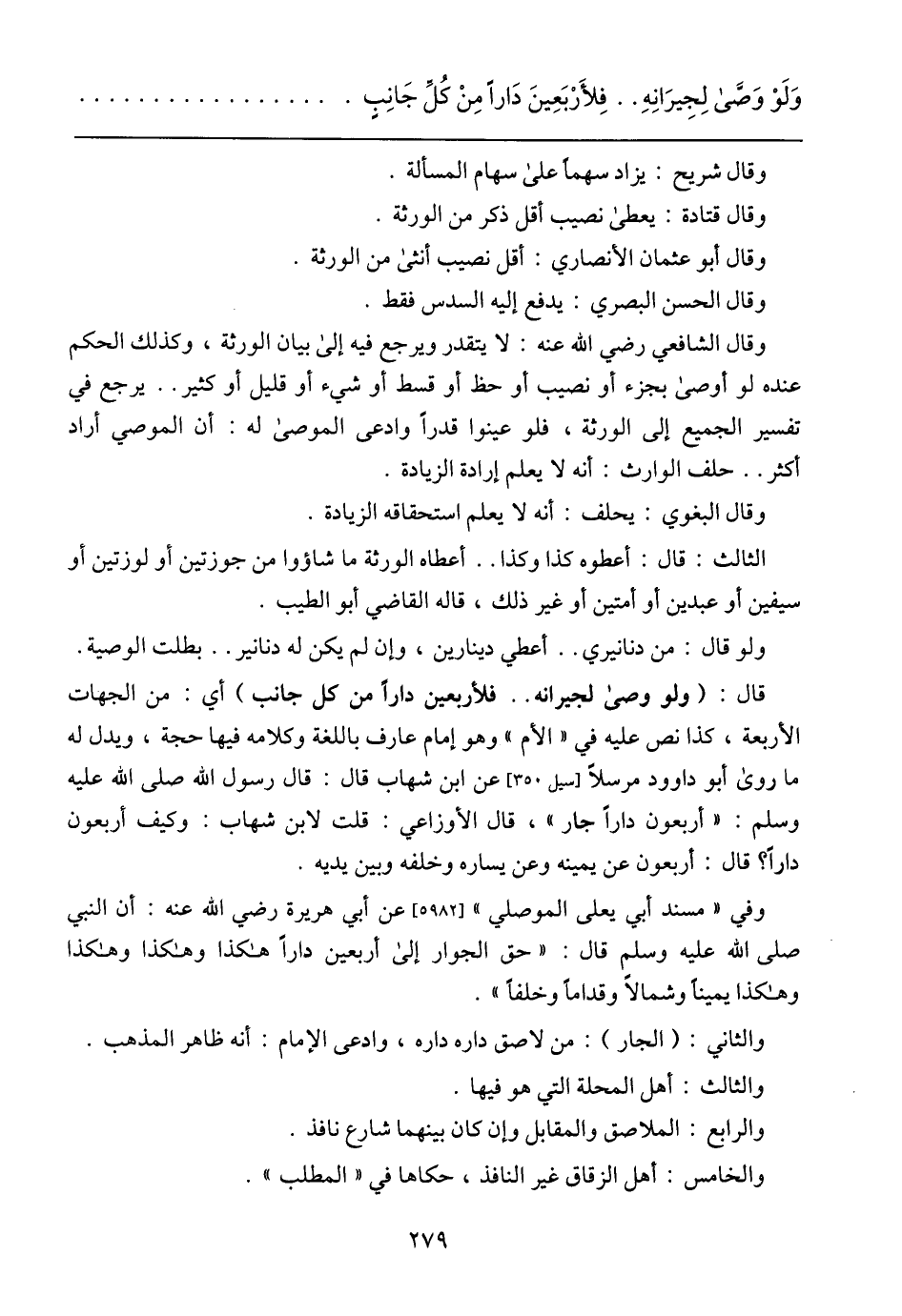 وَلَوْ وَصَى لِجِيرَانِهِ .. فِلأَرْبَعِينَ دَاراً مِنْ كُلِ جَانِبِ