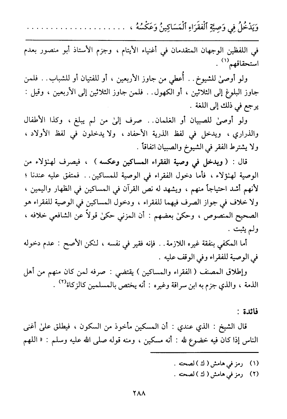 وَيَدْخُلُ فِي وَصِيَةِ الْفقَراءِ وَالمَسَاكِينُ وَعَكْسُهُ،