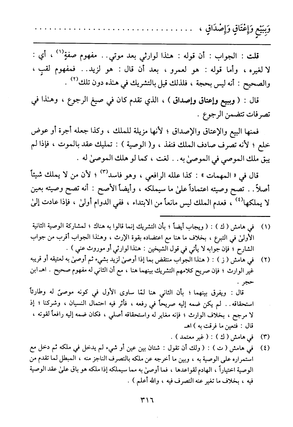قلت: الجواب: أن قوله: هذا لوارثي بعد موتي .. مفهوم صفة، أي: لا لغيره، وأما قوله: هو لعمرو، بعد أن قال: هو لزيد .. فمفهوم لقب، والصحيح: أنه ليس بحجة، فلذلك قيل بالتشريك في هذه دون تلك.