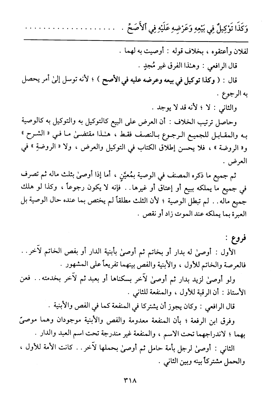 وحاصل ترتيب الخلاف: أن العرض على البيع كالتوكيل به والتوكيل به كالوصية به والمقابل للجميع الرجوع بالنصف فقط، هذا مقتضى مافي (الشرح) و (الروضة)،فلا يحسن إطلاق الكتاب في التوكيل والعرض، ولا (الروضة) في العرض.