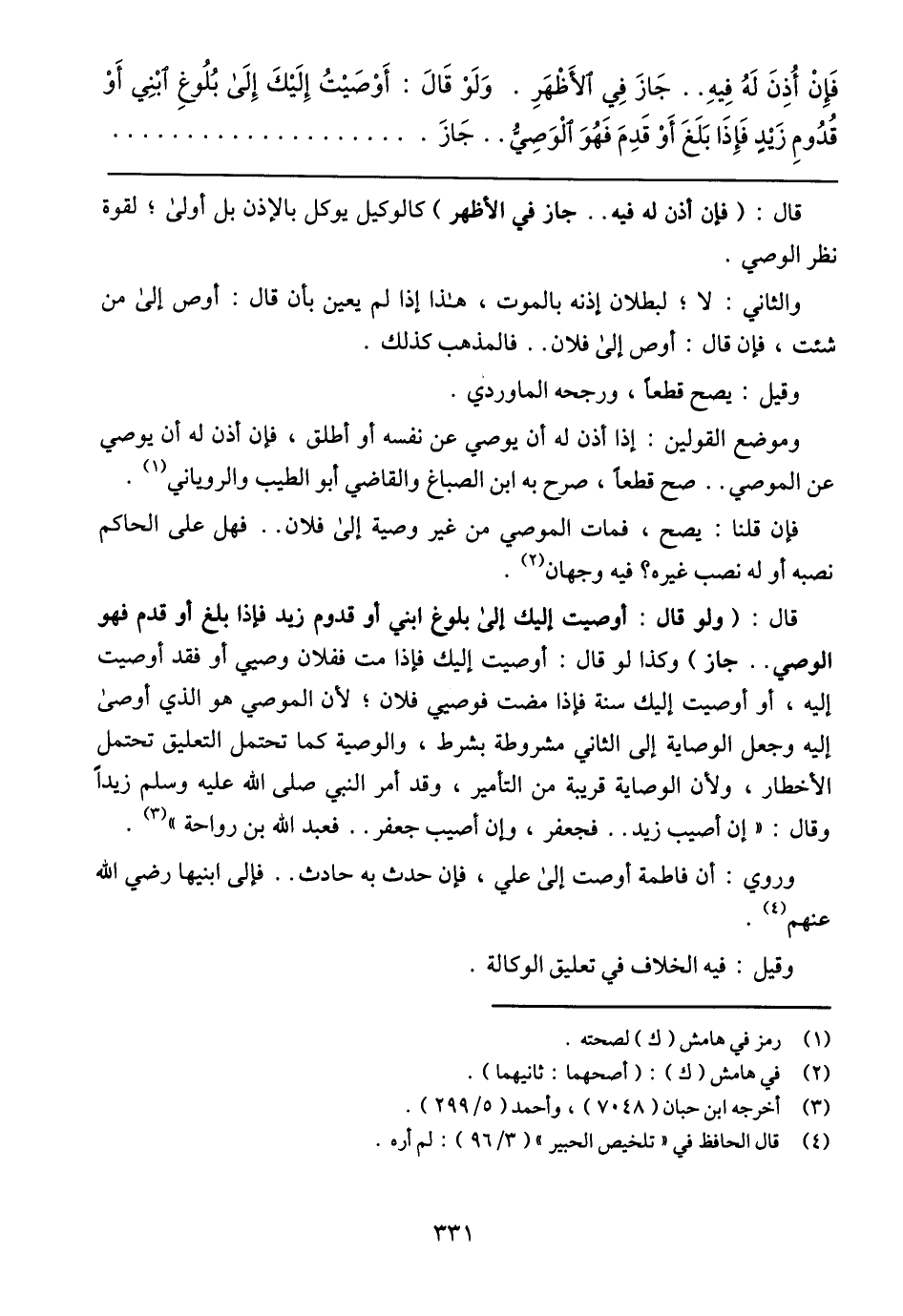 قال: (ولو قال: أصيت إليك إلى بلوغ ابني أو قدوم زيد فإذا بلغ أو قدم فهو الوصي .. جاز) وكذا لو قال: أوصيت إليك فإذا مت ففلان وصيي أو فقد أوصيت إليه، أو أوصيت إليك سنة فإذا مضت فوصيي فلان؛ لأن الموصي هو الذي أوصى إليه وجعل الوصاية إلى الثاني مشروطة بشرط، والوصية كما تحتمل التعليق تحتمل الأخطار، ولأن الوصاية قريبة من التأمير، وقد أمر النبي - صلى الله عليه وسلم - زيدا وقال: (إن أصيب زيد .. فجعفر، وإن أصيب جعفر .. فعبدالله بن رواحة).