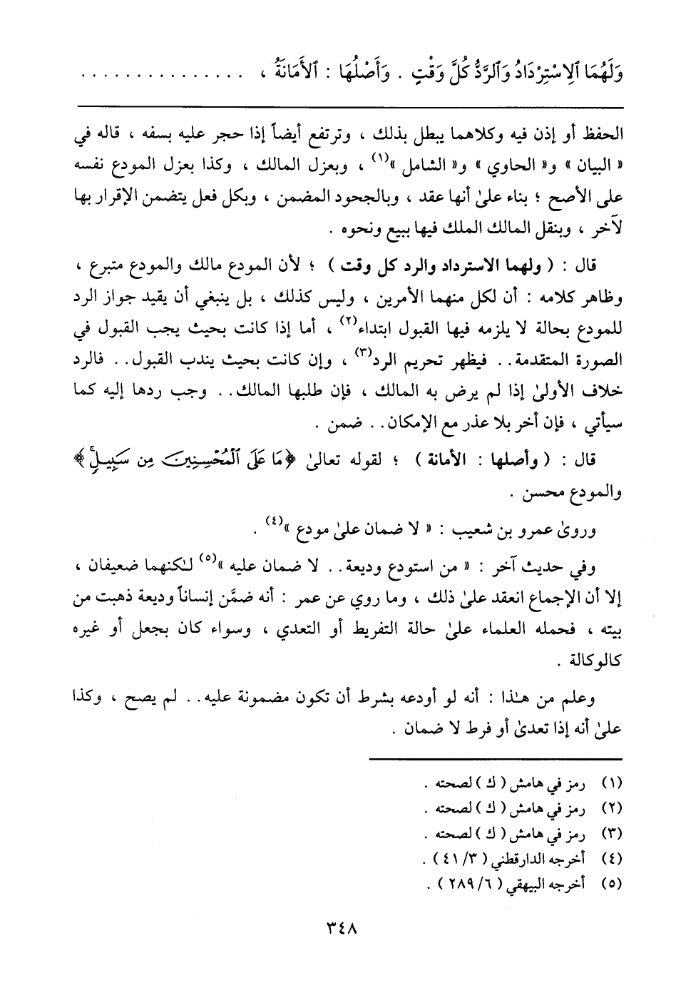 وروى عمرو بن شعيب: (لا ضمان على مودع).