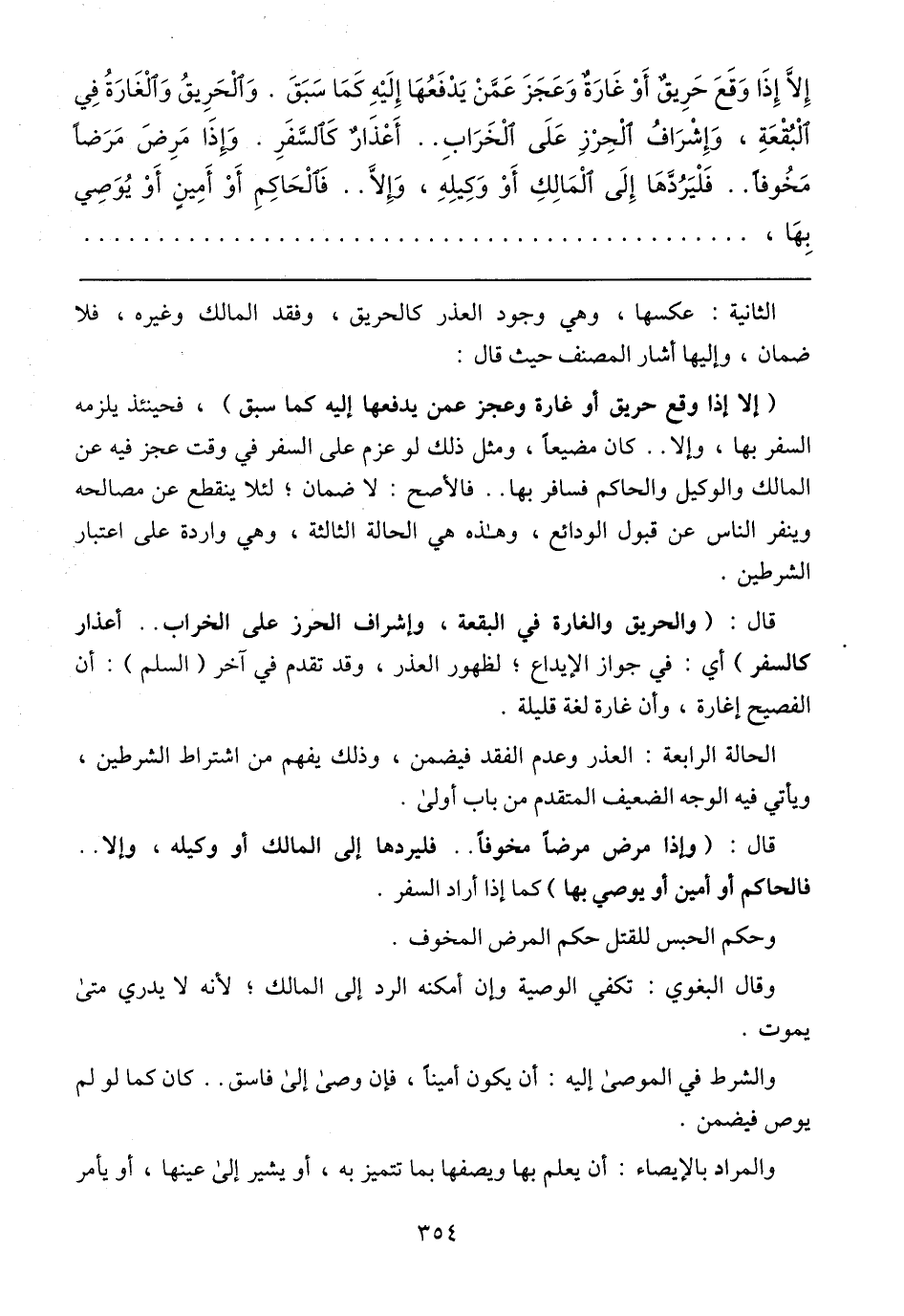 إِلاَّ إِذَا وَقَعَ حَرِيقٌ أَو غَارَةٌ وَعَجَزَ عَمَّنْ يَدْفَعُهَا إِلَيهِ كَمَا سَبَقَ. والحَرِيقُ والغَارَةُ فِي البُقعَةِ، وَإِشْرَافُ الحِرْزِ عَلَى الْخَرَابِ .. أعذَارٌ كالسَّفَرِ. وإِذَا مَرِضَ مَرَضاً مخُوفاً .. فليَرُدَّهَا إِلَى الْمَالِكِ أو وَكِيلِهِ، وَإِلاَّ .. فالحَاكِمِ أَوْ أَمِينٍ أَوْ يُوَصِي بِهَا،