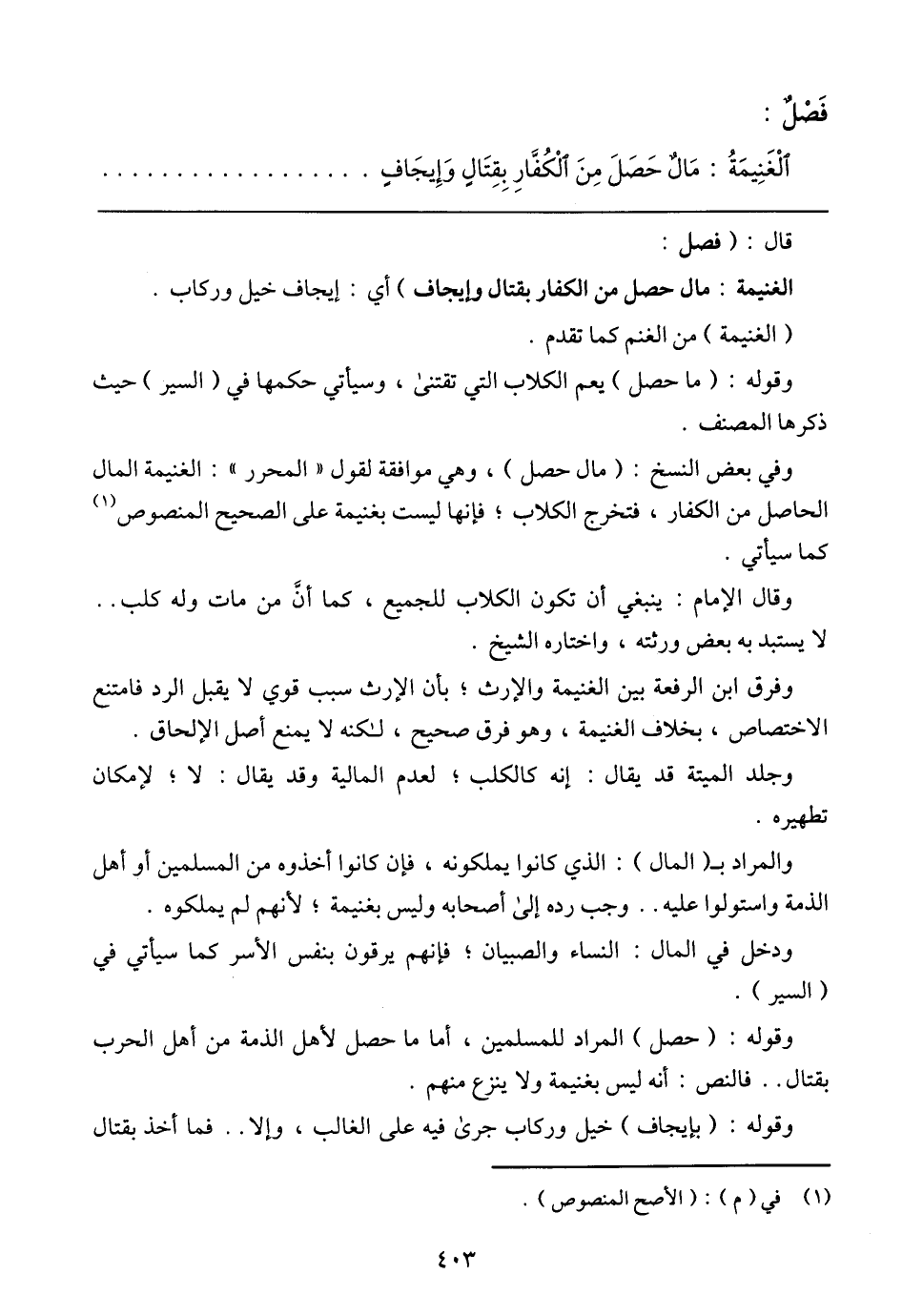 وفي بعض النسخ: (مال حصل)، وهي موافقة لقول (المحرر): الغنيمة المال الحاصل من الكفار، فتخرج الكلاب؛ فإنها ليست بغنيمة على الصحيح المنصوص كما سيأتي.