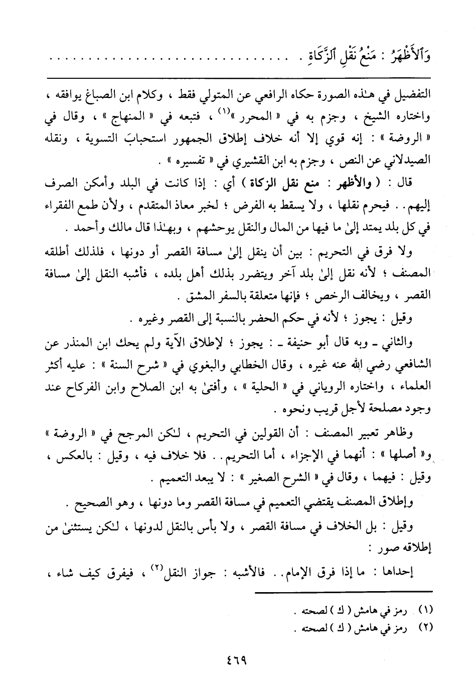 وَالأَظْهَرُ: مَنْعُ نَقْلِ الزَّكَاةِ