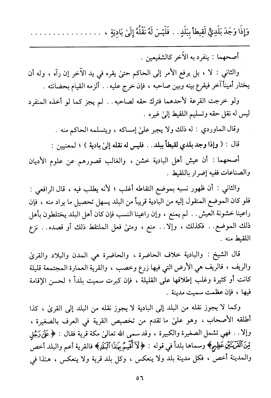 وَإِذَا وَجَدَ بَلَدِيٌّ لَقِيطًا بِبَلَدٍ .. فَلَيْسَ لَهُ نَقْلُهُ إِلَى بَادِيَةٍ،
