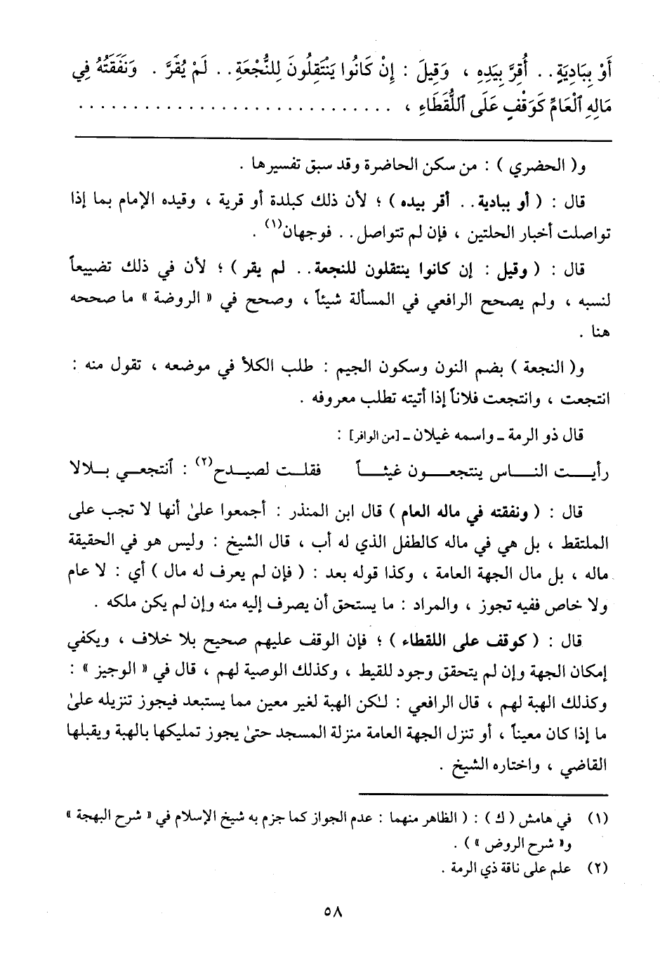 أَوْ بِبَادِيَةٍ .. أُقِرَّ بِيَدِهِ، وَقِيلَ: إِنْ كَانُوا يَنْتَقِلُونَ لِلنُّجْعَةِ .. لَمْ يُقرَّ. وَنَفَقَتُهُ فِي مَالِهِ الْعَامِّ كَوَقْفٍ عَلَى اللُّقَطَاءِ،