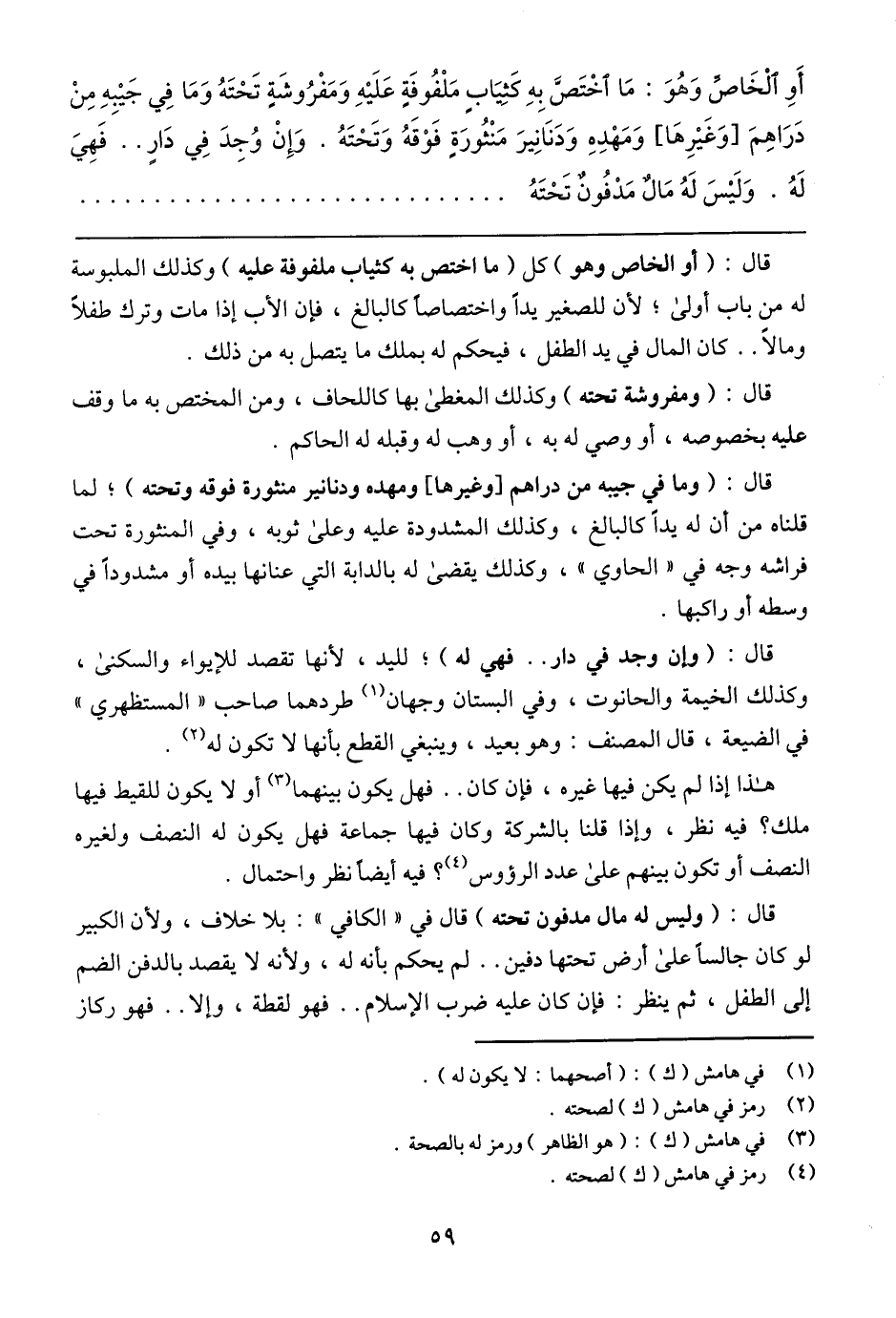 أَوِ الْخَاصِّ وَهُوَ: مَا اخْتَصَّ بِهِ كَثِيَابٍ مَلْفُوفَةٍ عَلَيْهِ وَمَفْرُوشَةٍ تَحْتَهُ وَمَا فِي جَيْبِهِ مِنْ دَرَاهِمَ [وَغَيْرِهَا] وَمَهْدِهِ وَدَنَانِيرَ مَنْثُورَةٍ فَوْقَهُ وَتَحْتَهُ. وَإِنْ وُجِدَ فِي دَارٍ .. فَهِيَ لَهُ. وَلَيْسَ لَهُ مَالٌ مَدْفُونٌ تَحْتَهُ