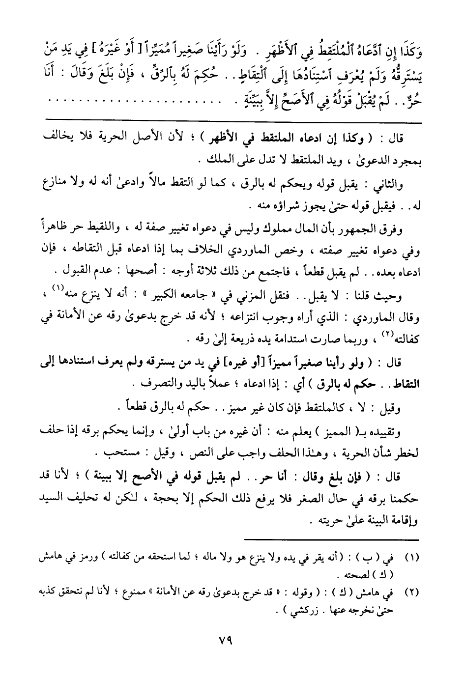قال: (فإن بلغ وقال: أنا حر .. لم يقبل قوله في الأصح إلا ببينة)؛ لأنا قد حكمنا برقه في حال الصغر فلا يرفع ذلك الحكم إلا بحجة، لكن له تحليف السيد وإقامة البينة على حريته.
