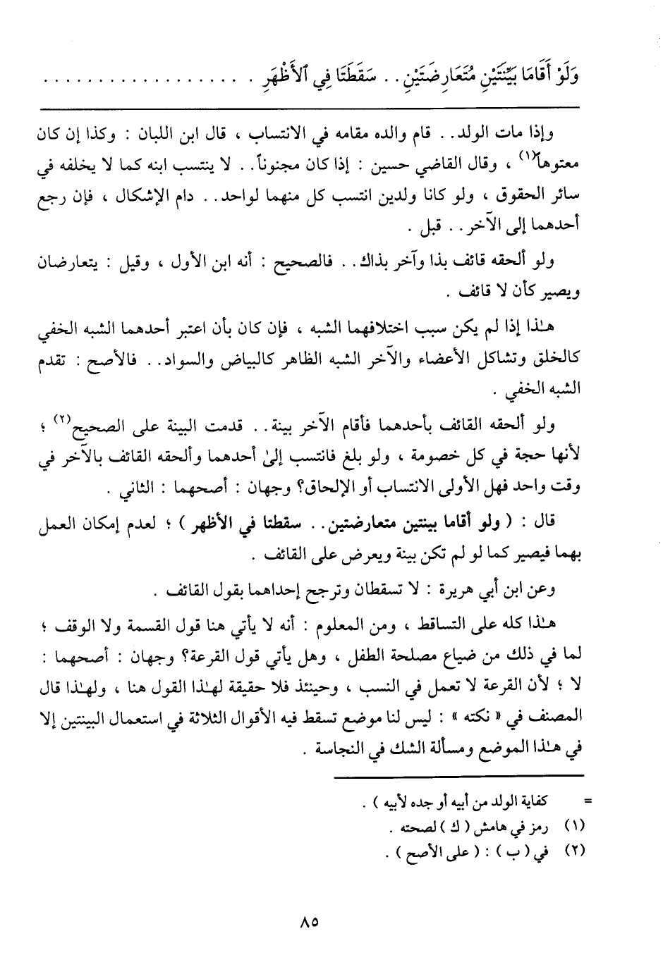 هذا إذا لم يكن سبب اختلافهما الشبه، فإن كان بأن اعتبر أحدهما الشبه الخفي كالخلق وتشاكل الأعضاء والآخر الشبه الظاهر كالبياض والسواد .. فالأصح: تقدم الشبه الخفي.