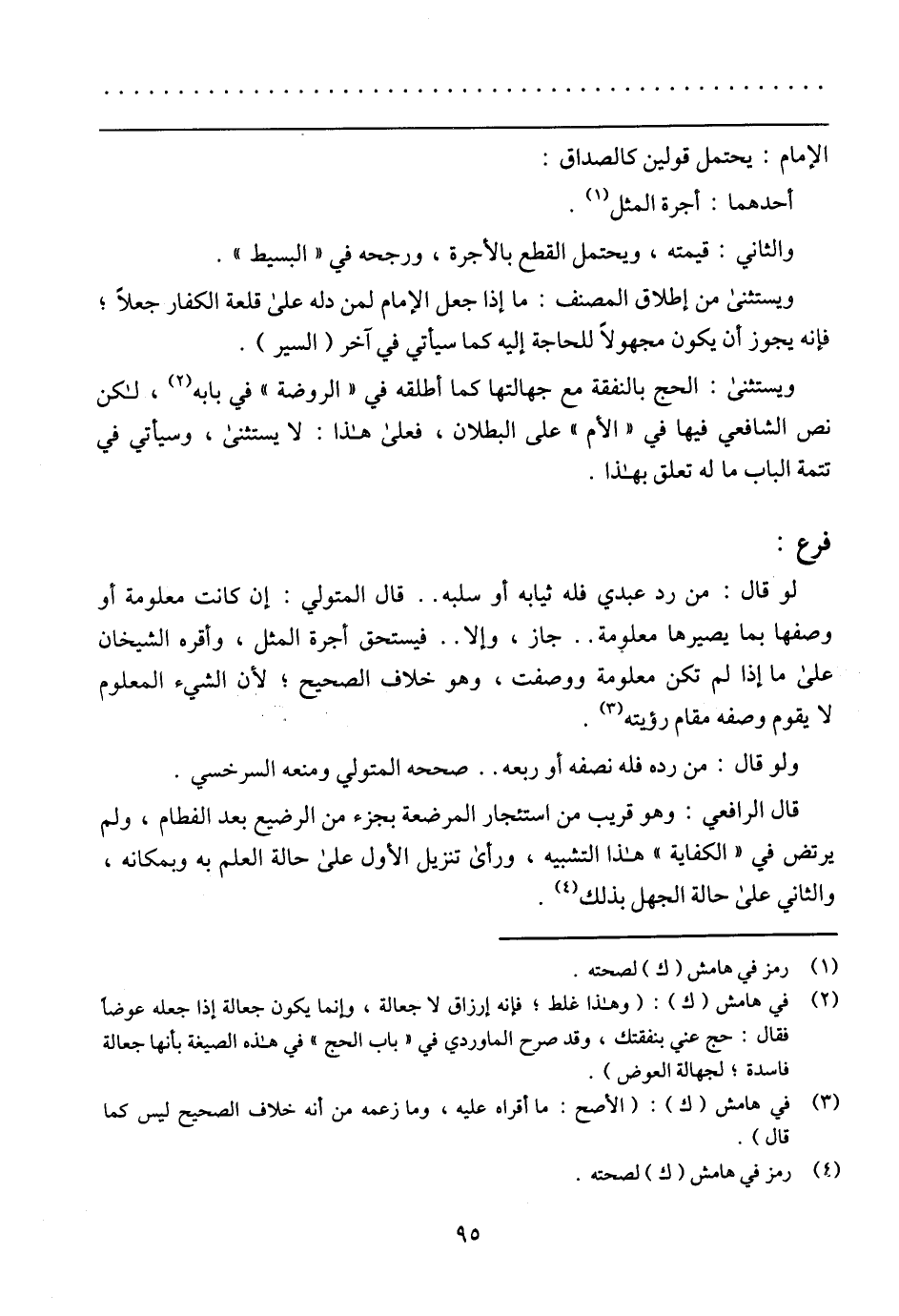 لو قال: من رد عبدي فله ثيابه أو سلبه .. قال المتولي: إن كانت معلومة أو وصفها بما يصيرها معلومة .. جاز، وإلا .. فيستحق أجرة المثل، وأقره الشيخان على ما إذا لم تكن معلومة ووصفت، وهو خلاف الصحيح؛ لأن الشيء المعلوم لا يقوم وصفه مقام رؤيته.