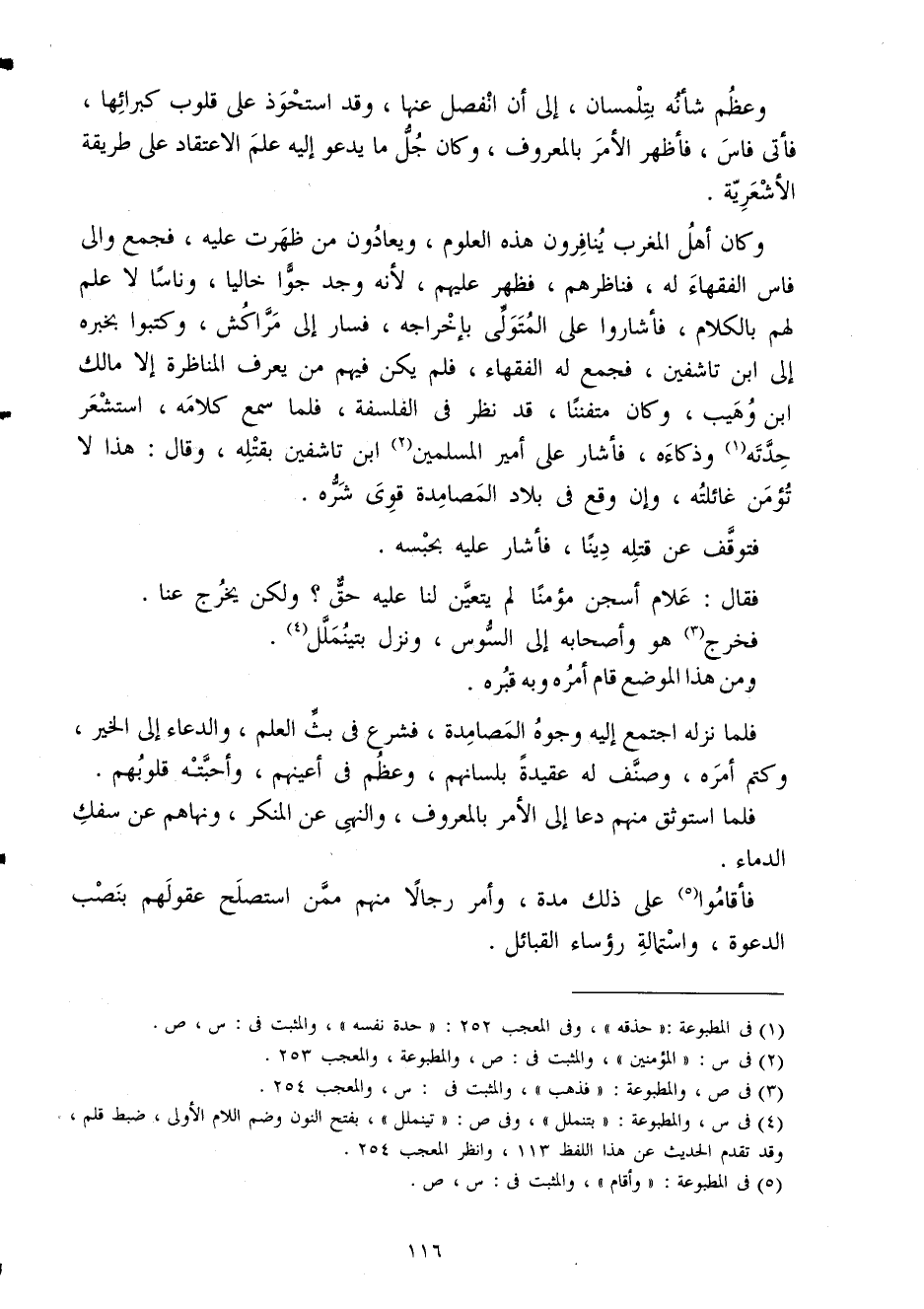 وَكَانَ أهل الْمغرب ينافرون هَذِه الْعُلُوم ويعادون من ظَهرت عَلَيْهِ فَجمع وَالِي فاس الْفُقَهَاء لَهُ فناظرهم فَظهر عَلَيْهِم لِأَنَّهُ وجد جوا خَالِيا وناسا لَا علم لَهُم بالْكلَام فأشاروا على الْمُتَوَلِي بِإِخْرَاجِهِ فَسَار إِلَى مراكش وكتبوه بِخَبَرِهِ إِلَى ابْن تاشفين فَجمع لَهُ الْفُقَهَاء فَلم يكن فيهم من يعرف المناظرة إِلَّا مَالك ابْن وهيب وَكَانَ متفننا قد نظر فِي الفلسفة فَلَمَّا سمع كَلَامه استشعر حِدته وذكاءه فَأَشَارَ على أَمِير الْمُسلمين ابْن تاشفين بقتْله وَقَالَ هَذَا لَا تؤمن غائلته وَإِن وَقع فِي بِلَاد المصامدة قوى شَره