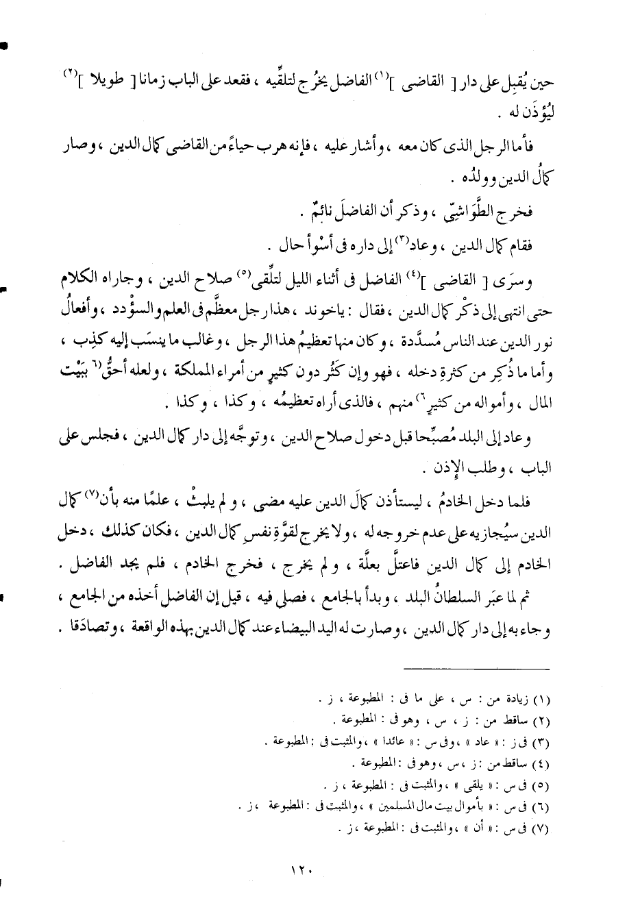 وسرى القَاضِي الْفَاضِل فِي أثْنَاء اللَّيْل لتلقي صَلَاح الدّين وجاراه الْكَلَام حَتَّى انْتهى إِلَى ذكر كَمَال الدّين فَقَالَ ياخوند هَذَا رجل مُعظم فِي الْعلم والسؤدد وأفعال نور الدّين عِنْد النَّاس مسددة وَكَانَ مِنْهَا تَعْظِيم هَذَا الرجل وغالب مَا ينْسب إِلَيْهِ كذب وَأما مَا ذكر من كَثْرَة دخله فَهُوَ وَإِن كثر دون كثير من أُمَرَاء المملكة وَلَعَلَّه أَحَق بِبَيْت المَال وأمواله من كثير مِنْهُم فَالَّذِي أرَاهُ تَعْظِيمه وَكَذَا وَكَذَا