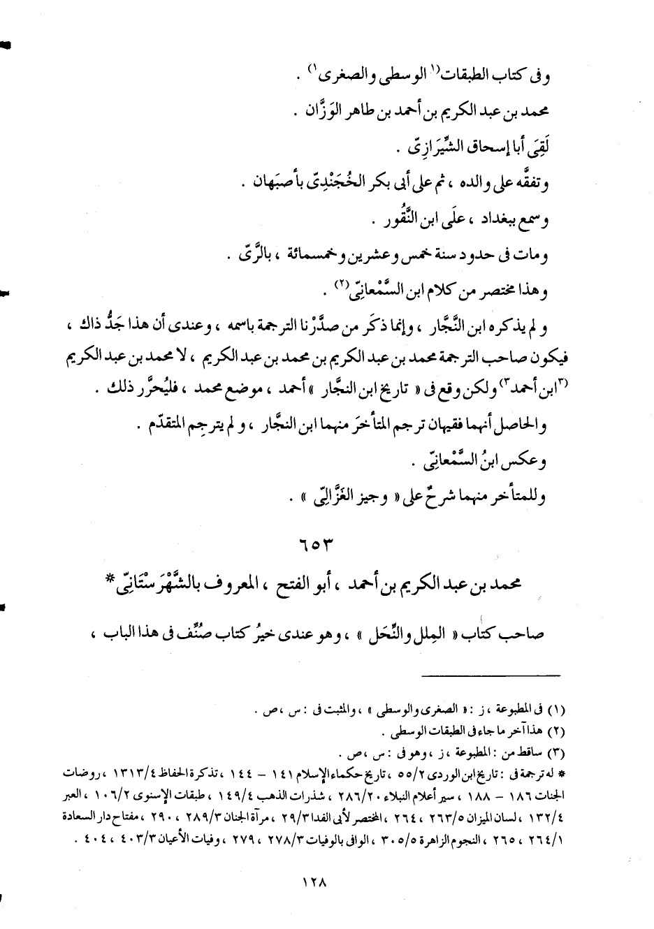 653 - مُحَمَّد بن عبد الْكَرِيم بن أَحْمد أَبُو الْفَتْح الْمَعْرُوف بالشهر ستاني