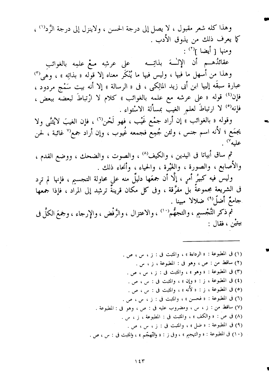 ثمَّ سَاق أبياتا فِي الْيَدَيْنِ والكيف وَالصَّوْت والضحك وَوضع الْقدَم والأصابع وَالصُّورَة والغيرة وَالْحيَاء وأنحاء ذَلِك