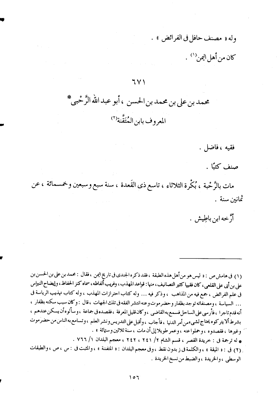 671 - مُحَمَّد بن عَليّ بن مُحَمَّد بن الْحسن أَبُو عبد الله الرَّحبِي الْمَعْرُوف بِابْن المتقنة