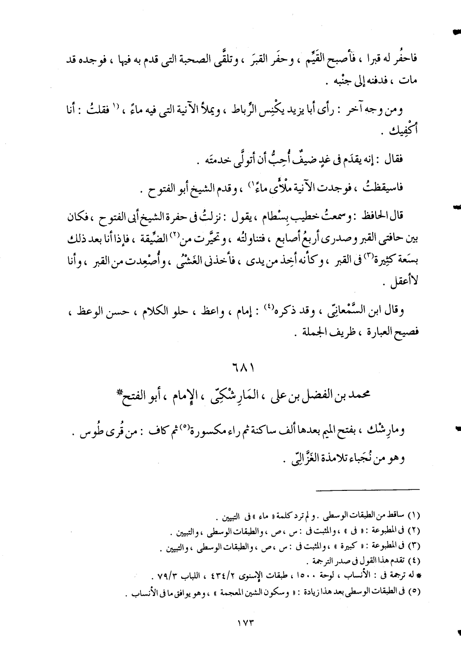 681 - مُحَمَّد بن الْفضل بن عَليّ المارشكي الإِمَام أَبُو الْفَتْح ومارشك بِفَتْح الْمِيم بعْدهَا ألف سَاكِنة ثمَّ رَاء مَكْسُورَة ثمَّ كَاف من قرى طوس