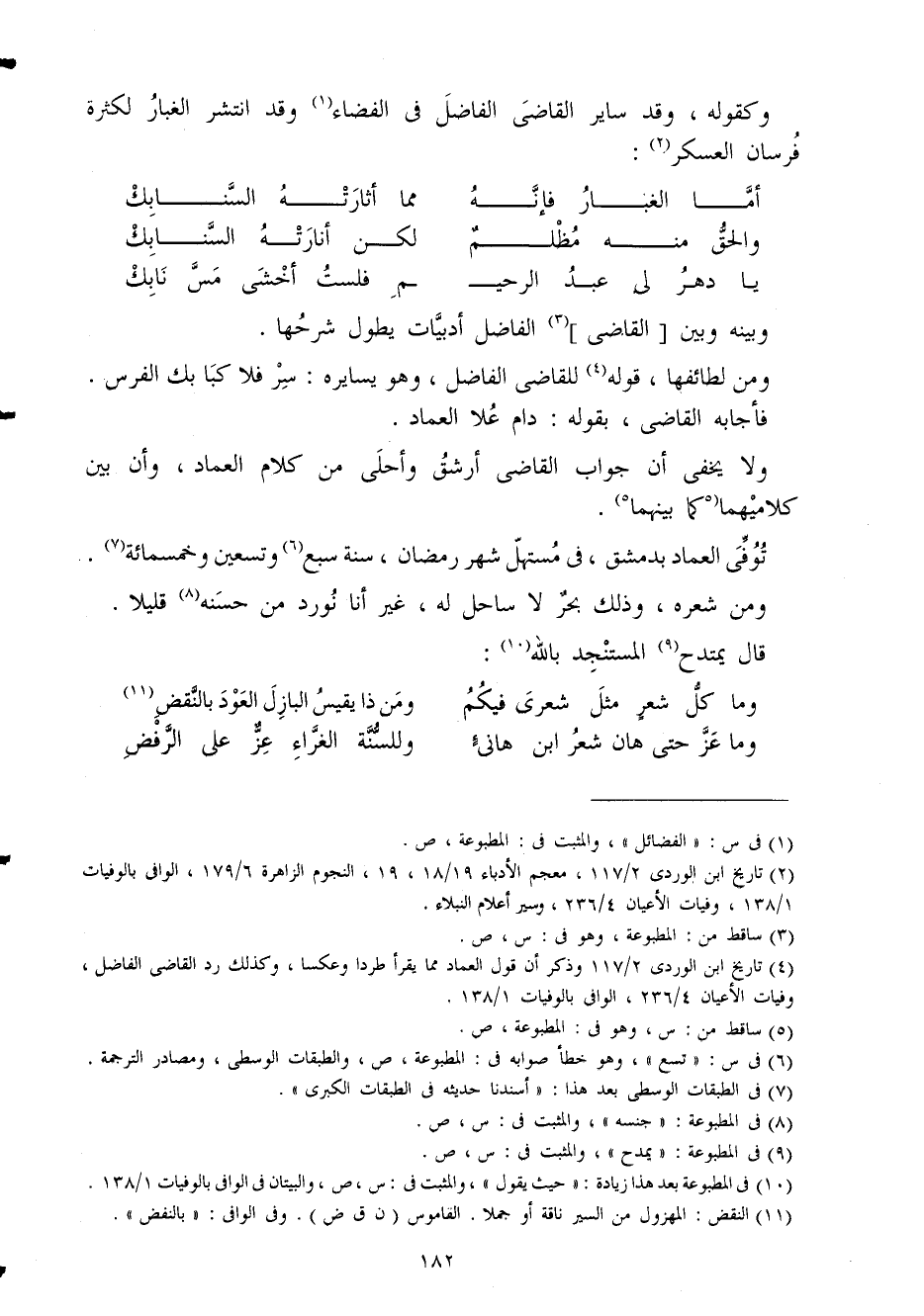 وَلَا يخفى أَن جَوَاب القَاضِي أرشق وَأحلى من كَلَام الْعِمَاد وَأَن بَين كلاميهما كَمَا بَينهمَا